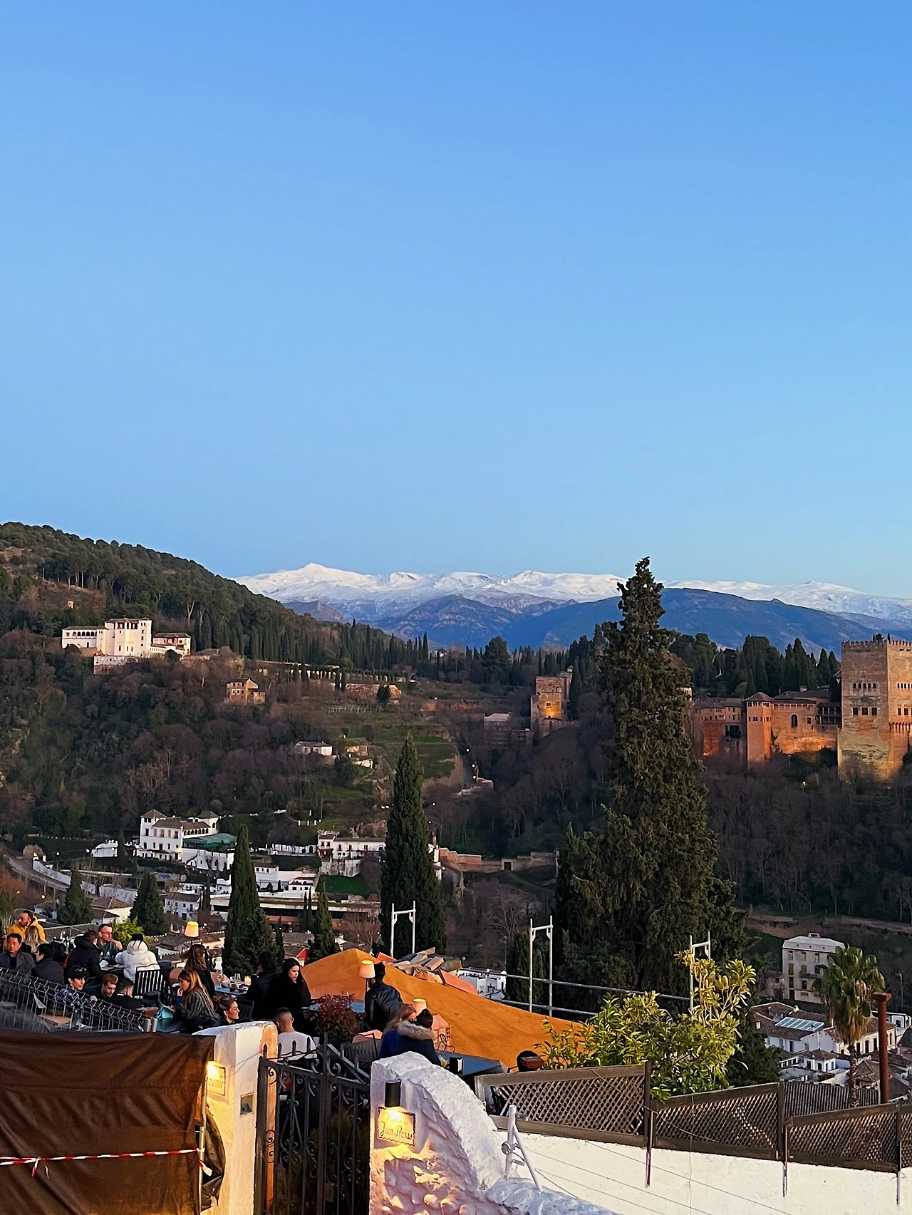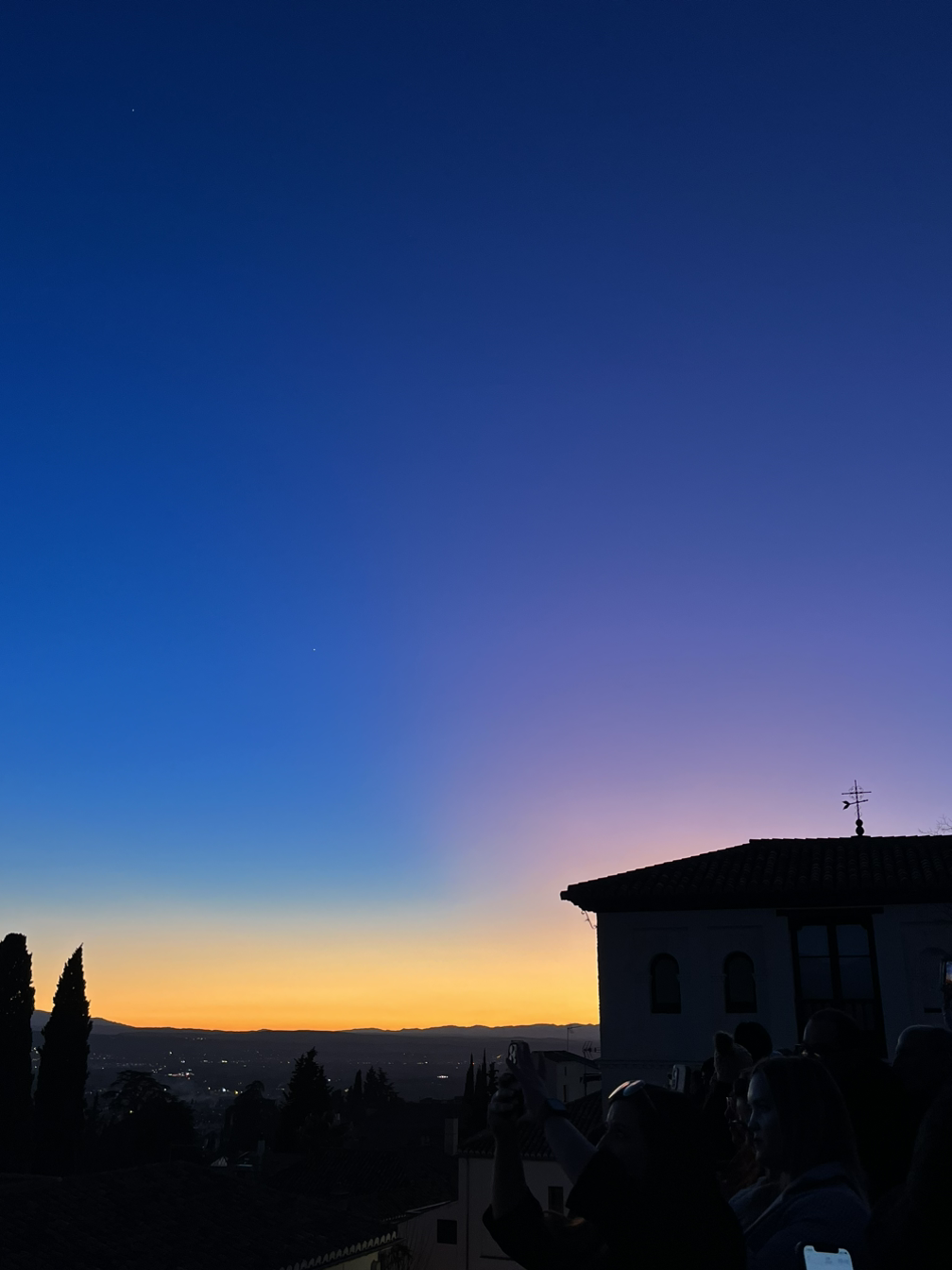 알함브라 궁전 자체는 6시까지만 운영했으므로 빠르게 둘러보고 내려와 간단히 커피 한 잔 마시고 궁전 반대편에 있는 산 니콜라스 전망대에 올랐다. 산 니콜라스라기보다는 사람 니콜라스 전망대로 불러야 할 만큼 사람이 많았다. 그라나다 도시가 전반적으로 사람이 많았는데, 이 정도면 그라나다 도시가 터져버리는 게 아닌가 싶을 정도로 전망대 위의 인구 밀도는 높았다. 이미 해는 지고 하늘이 서서히 어두워지기 시작했다.