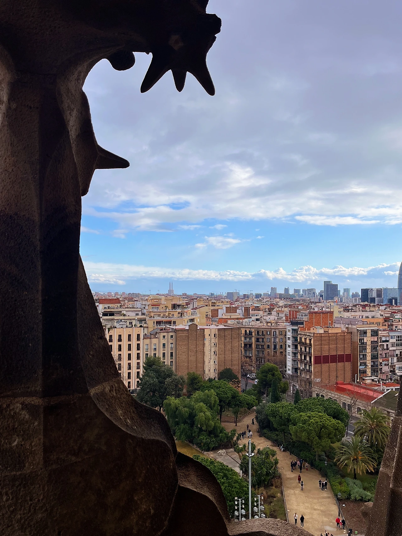 바르셀로나는 그동안 머물렀던 여느 남부 도시들과 다르게 꽤 추웠다. 게다가 어제부터 비바람이 불어서 기온이 더 떨어진 상황이었는데 오늘이라고 크게 다르지 않아 두꺼운 외투와 목도리를 몸을 꽁꽁 싸매도 칼바람이 들이찼다. 손난로 겸으로 챙겨 온 보조배터리는 한 시간이 채 되지 않아 방전되어 버렸고 탑에 올라갔다 내려온 이후로는 따뜻한 커피 한 잔이 절실해졌다.