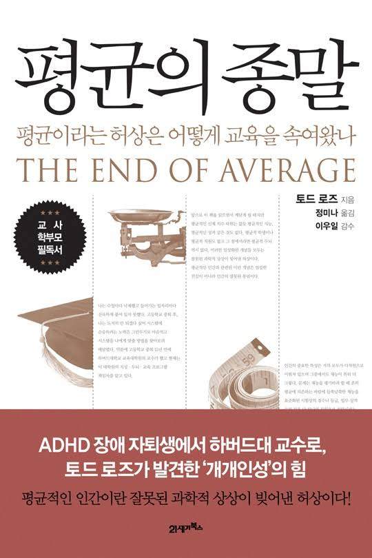 <평균의 종말> 저자 토드 로즈(Todd Rose)는 ADHD 장애를 가지고 있었고, 자퇴생이었다. 성인이 되어서는 자식들을 부양하기 위해 공장에서 일을 했다. 뒤늦게 대학교에 입학하며 하버드 교육대학교 교수가 된 케이스다. 그는 가감없이 기존 교육계를 겨냥한다. 무분별한 '평균주의'가 다른 잠재력을 가지고 있는 학생을 '문제아'나 낙제생으로 단정하고, 개개인들의 잠재력을 죽이고 있다고 고발한다. 나아가 획일적인 평균주의는 어떻게 만들어졌으며, 어떻게 벗어날 수 있는지 제시하고 있다.
