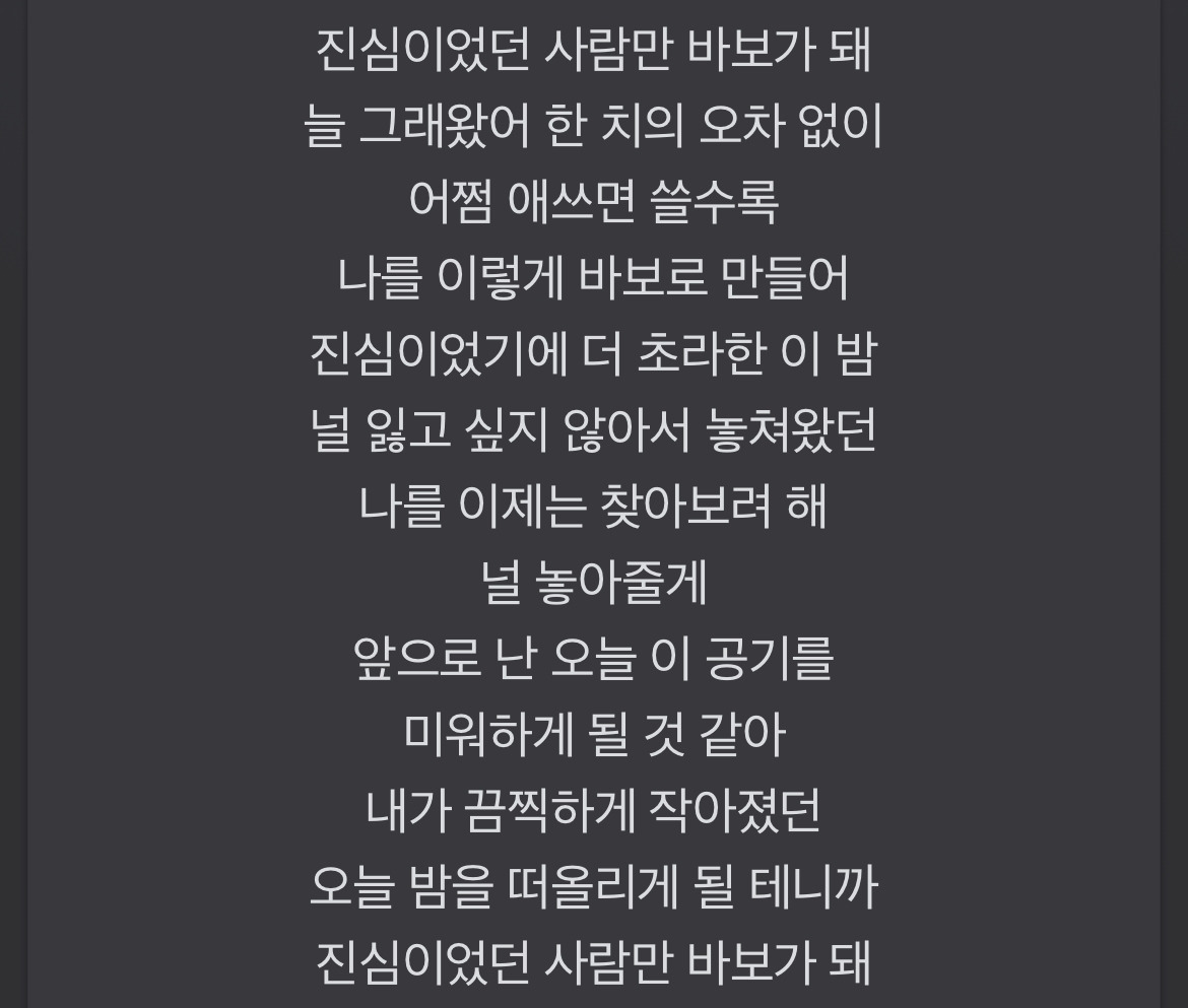 ‘이 노래 진짜 좋아, 진짜 가사를 들어 봐야 돼. 진심이었던 사람만 바보가 돼’