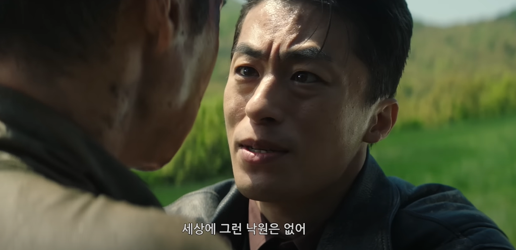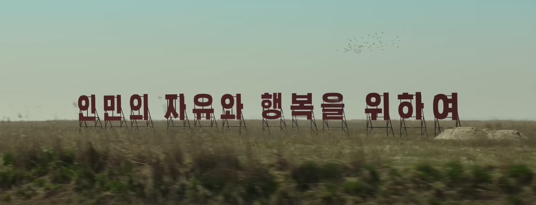 출처: 플러스엠 엔터테인먼트 <탈주(2024)> 예고편드넓은 초원에 빨간 글씨의 간판이 있다.