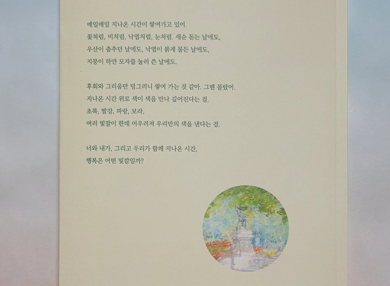 20대에 문학을 전공하며 과제 제출을 위해 단편소설을 써본(어떤 내용인지 지금은 기억에 없지만) 이후, 오랜 세월이 지나 작년 가을부터 단편소설을 쓰기 시작했다. 올봄 무언가에 이끌리듯 두 번째 단편소설을 써 내려갔고, 계획에 없었던 책 쓰기 프로젝트 공저 출간에 도전한 결과물이다.