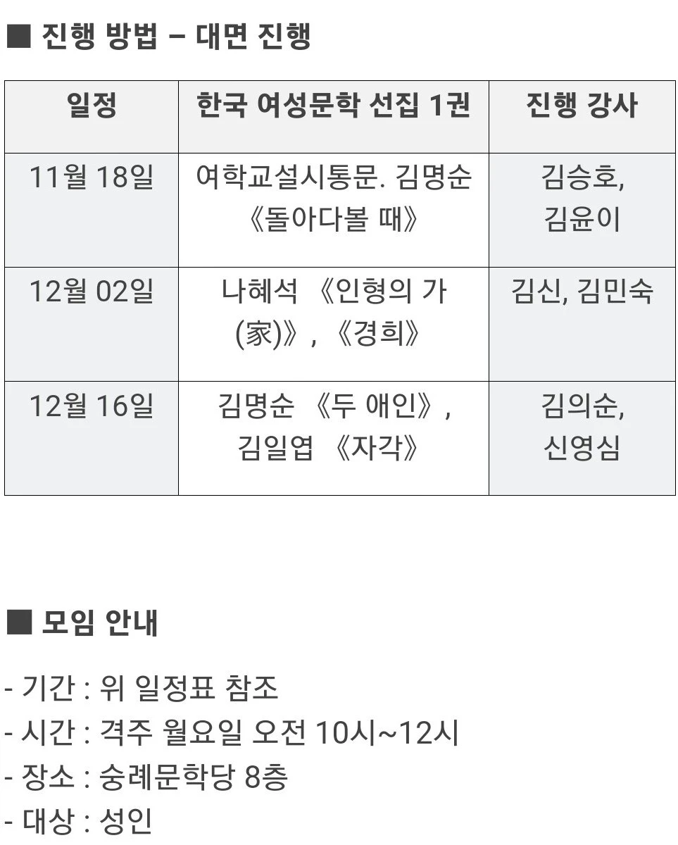 향후 한국 문학사에서 중요한 위치에 자리할 《한국 여성문학 선집》을 함께 읽으려 합니다. 제1권 《여성문학의 탄생》부터 시작하는데요. 조선의 근대화 시기 공론장에 ‘배운 여자’들이 등장합니다. 이들 신여성이 한국 근대문학의 풍경에 어떤 영향을 끼쳤는지, 그들이 어떻게 ‘여성도 작가’임을 입증했는지 함께 읽어보려 합니다.