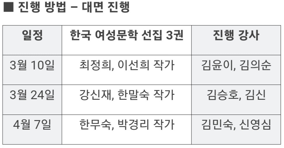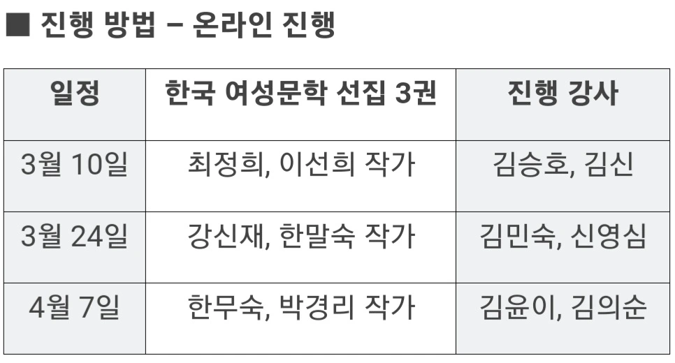 <여성문학의 탄생>을 만난 1기는 한국 근대문학의 출발기에 등장한 '신여성'의 계몽적, 정론적, 문학적, 미적 글쓰기를 통해 '여성도 작가'임을 입증했습니다. 여성적 리얼리즘의 탄생과 ‘근대 여성문학의 형성기’를 만난 2기 <계급, 민족, 여성의 교차>에 이어 3기는 <전쟁과 생존>을 다룹니다. 해방과 전쟁의 소용돌이 속 ‘여성들의 생존기’로 향하는 여정에 여러분을 초대합니다.