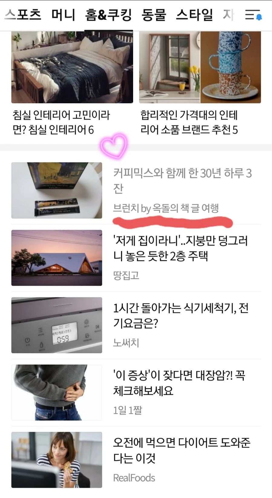 다음 포털 홈&쿠킹에 글이 올라왔다.