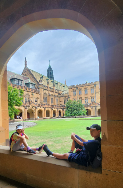 '멀티 스포츠' 수업을 마친 후 신남매와 시드니 대학교 탐방에 나섰다. 세계에서 아름다운 대학 캠퍼스 상위 10위에 올랐고, 해리포터 호그와트 느낌의 대학교로 유명한 곳이다.
