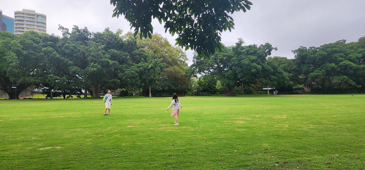 현지인들을 따라하고 싶었던 것이 또 하나 있었는데, 그들이 신발을 벗고 잔디밭을 걷는 모습이 평화로워 보이고 낭만있어 보였다. 그래서 나도 과감하게 신발 벗고 걸었다. 그런데... 몇 발자국 걷지 못하고 앞에 개똥을 발견했다. 화들짝 놀라서 나는 다시 신발을 신었다. 역시나 나는 아직 개똥과 함께 잔디밭을 즐길 마음의 준비가 안 된 것 같다. 호주의 잔디밭을 즐기기 위한 마음의 준비가 살짝 부족하지만, 부족한 채로 즐겨도 우리에겐 충만한 초록 세상이었다.