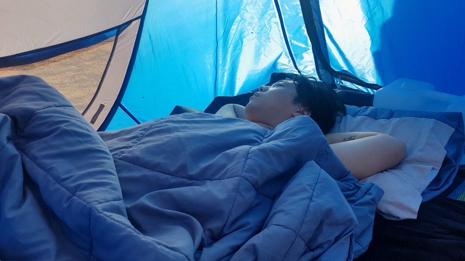 팔자 좋아 보이죠? 현실은 인터넷 안됨, 전자기기 충전 안됨, 더워 죽겠는데 갈 데 없음.. 할 수 있는 거라곤 이 곳, 무료캠팽장에서 시간을 때우는 일 밖에 없었습니다 하하