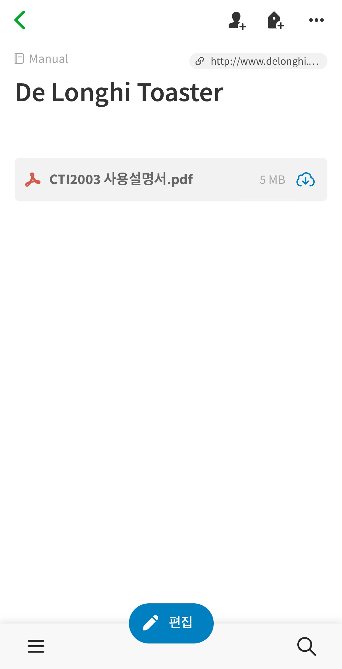 대부분의 제품은 구입 시 상품설명서가 포함되어 있다. 하지만 보관하는 것도 일이고 보관한다고 해도 차지하는 공간이 꽤 크며 나중에 찾아보는 것도 쉽지 않다. 그때마다 사용 모델을 검색하고 - 심지어는 이미 자리에 세팅된 무거운 제품을 꺼내 뒷면이나 옆면을 봐야 하는 경우도 있다. - 설명서와 주의사항을 찾는 것은 시간을 상당히 잡아먹는 일이다. 그래서 처음 구입 시 세팅까지 마친 후에 인터넷에서 해당 제품의 모델명을 잊기 전에 사용설명서를 찾아 에버노트에 저장해둔다. 에버노트는 PDF 파일을 한 장씩 넘겨볼 수 있는 기능을 제공하고 있기 때문에 페이지에 드래그해서 붙여 넣기만 하면 언제든지 열람할 수 있다.