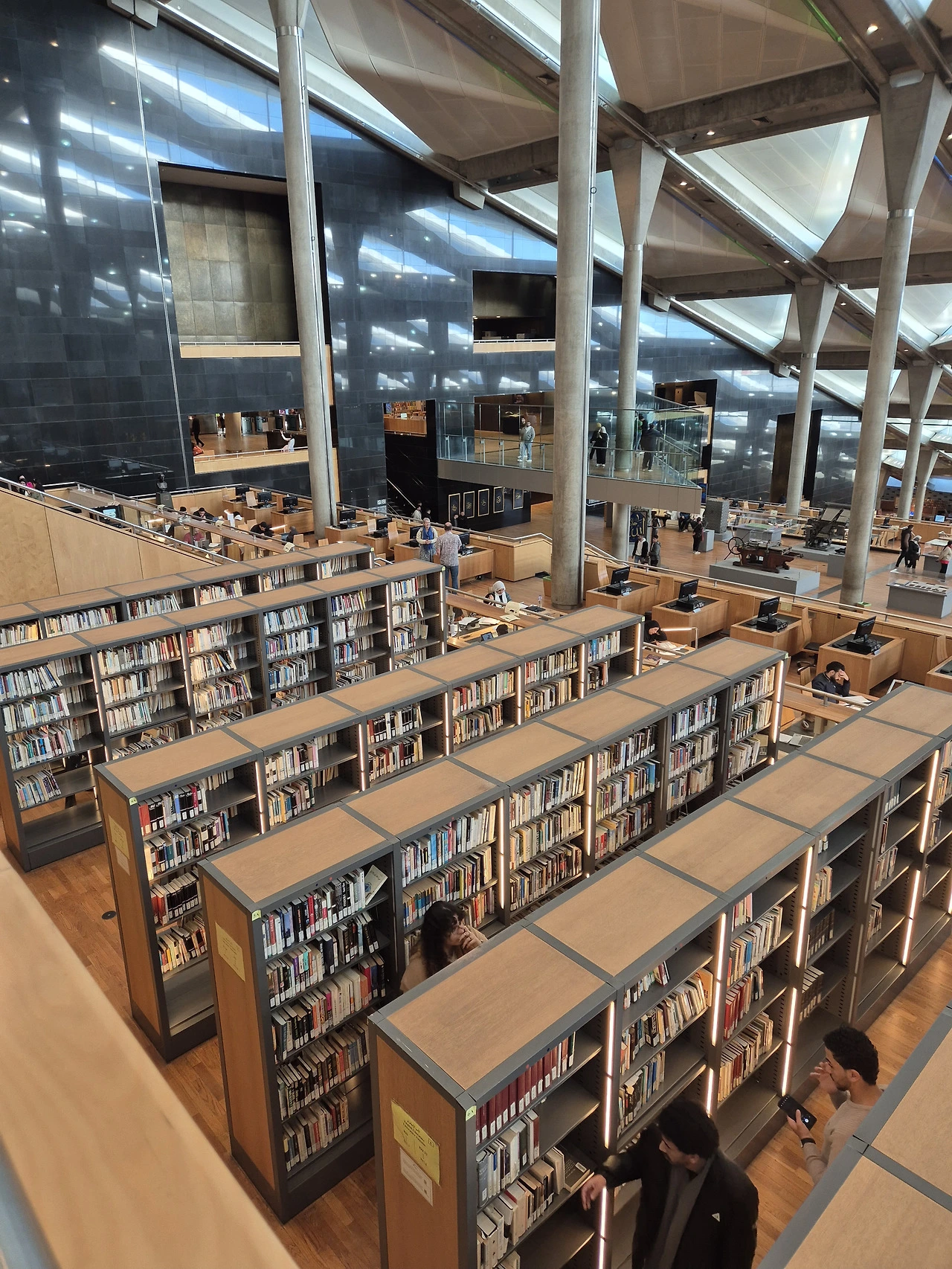 11층 건물에 책 800만여 권을 보관할 수 있는 서고와 열람실 박물관 4개 벨러리 19개 콘퍼런스 룸, 천체투영관등으로 이루어진 2만 400여 제곱미터(약 6100여 평) 규모의 원통형 복합 콤플렉스 신알렉산드리아 도서관이 건립되었다.