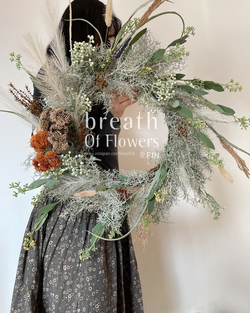리스는 생화소재, 조화, 프리저브드 플라워로 만들 수 있고 나는 조화를 선택했다.