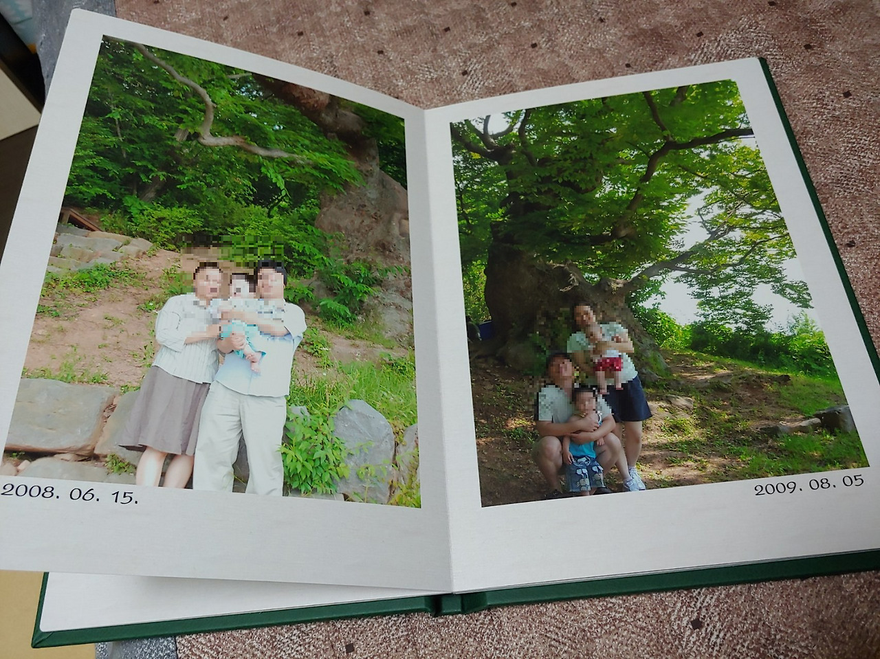 아들이 태어났을 때는 세 명이, 딸이 태어나서는 네 명의 완전체가 되어 해마다 이 장소를 찾아가 가족사진을 찍었다. 오백 살 된 느티나무에게는 우리와 나무만 아는 '가족나무'라는 이름이 생겼다. 아이들이 어렸을 때는 김밥을 싸 들고 느티나무 아래로 소풍을 가서 먹기도 하고, 눈이 오던 날은 나무 밑에서 눈싸움하며 놀기도 했다. 일 년에 한 번 정도만 찾아가는 장소였기에 한 뼘은 자란 아이들과 한 뼘은 늙은 부부의 이야기가 사진에 고스란히 담겼다. 연애 시절부터 2018년까지 찍은 사진으로 첫 앨범을 만들었다. 한 장 한 장 넘기며 만나는 가족의 성장을 사진으로 마주하며 눈시울이 붉어졌다. 헤이리에 있는 가족나무와의 인연은 이렇게 지금까지 이어지고 있다. 언젠가는 두 번째 앨범이 만들어질 것이고, 세 번째 앨범이 만들어질 때쯤 대가족이 이 나무 아래에 모여 이야기꽃을 피우고 있을지도 모른다. 나는 아이들에게 집이 아닌 우리 가족만의 장소를 선물하고 싶었다. 부부가 죽고 없어진 이후에도 찾아와 추억에 젖을 장소 하나쯤은 유산으로 남겨주는 것도 좋은 일이 아닐까. 카카오스토리에 올렸던 2013년, 2016년의 짧은 일기를 공유해 본다.