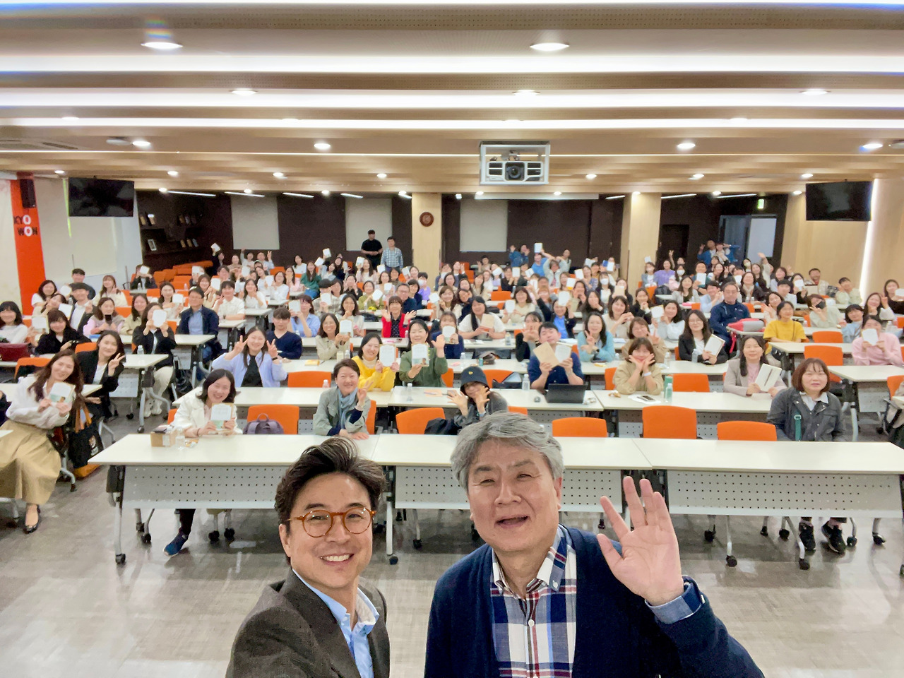 강의 의뢰가 왔을 때 작가님은 교사들이 모여있는 자리라는 이야기를 들으시고는 묻지도 따지지도 않고 바로 승낙을 해주셨다고 해요. 알고 보니 작가님의 아버지, 어머니 두 분 다 교사이셨더라고요. 그래서 더 교육 쪽에 관심이 크신 것 같았습니다.