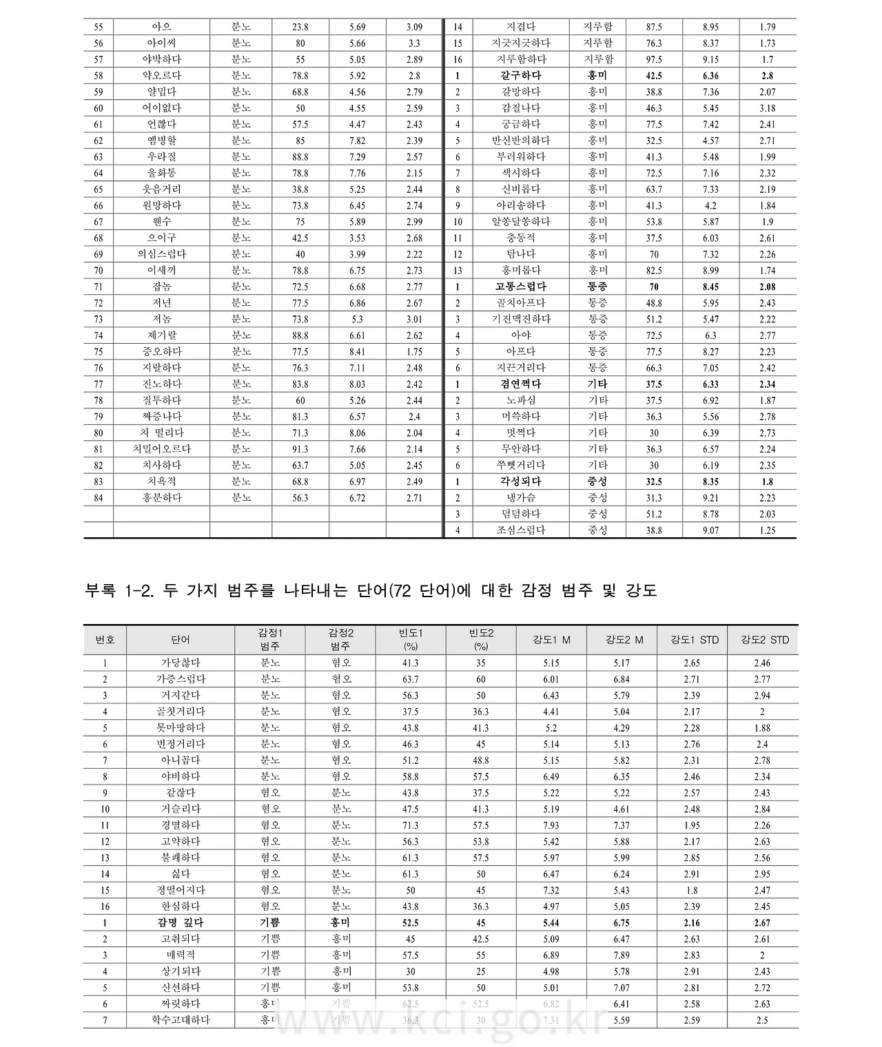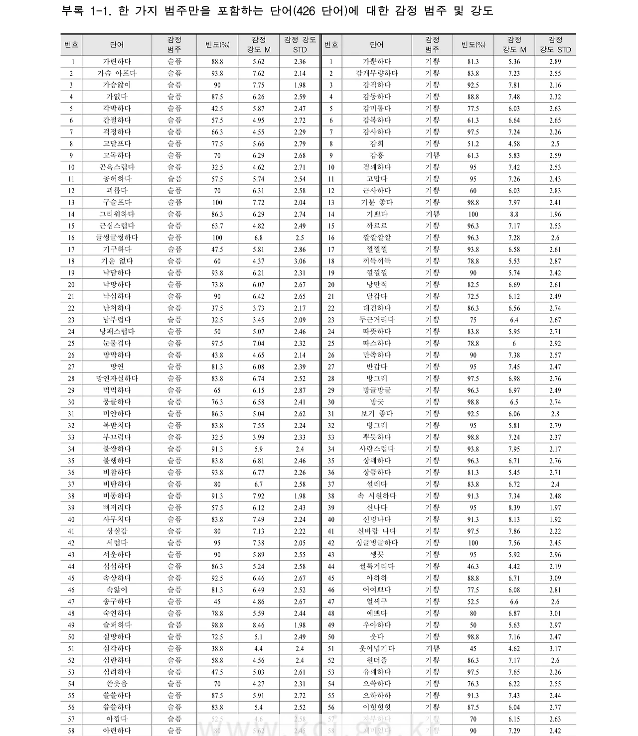 손선주, 박미숙, 박진은, 손진훈, 「한국어 감정 표현단어의 추출과 범주화」, 『감성과학』 Vol.15, 2012