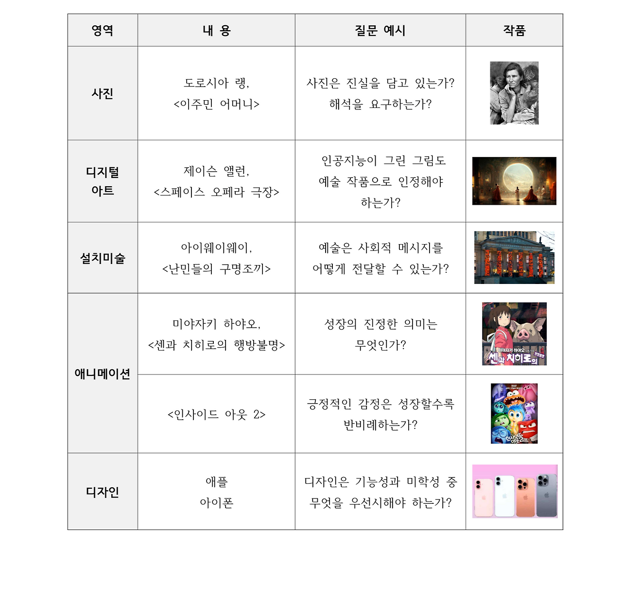 다음은 미술의 다양한 영역으로 하브루타를 확장한 예시를 소개한다.