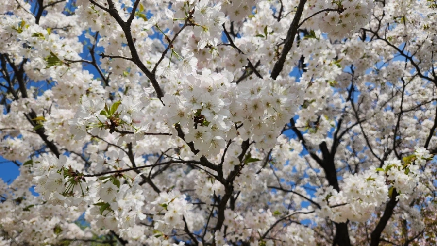 강력한 비바람으로 다 떨어졌 거로 생각했던 벚나무는 사람들이 아쉬워할 줄 알았는지 각자의 리듬대로 자라고 있었다. 잎이 나와 그 절정의 예쁨은 사라졌지만, 아직 꽃이 남아있는 나무도 많이 있었고, 이제야 만개한 나무도 있었다. 똑같은 봄이지만 나무 각자의 봄은 그렇게 다르게 흘러가고 있었다. 똑같은 벚나무라도 같은 속도로 성숙해야 한다는 법칙은 없으니까. 하얗게 만개한 벚꽃에 나의 미소도 만개한다.
