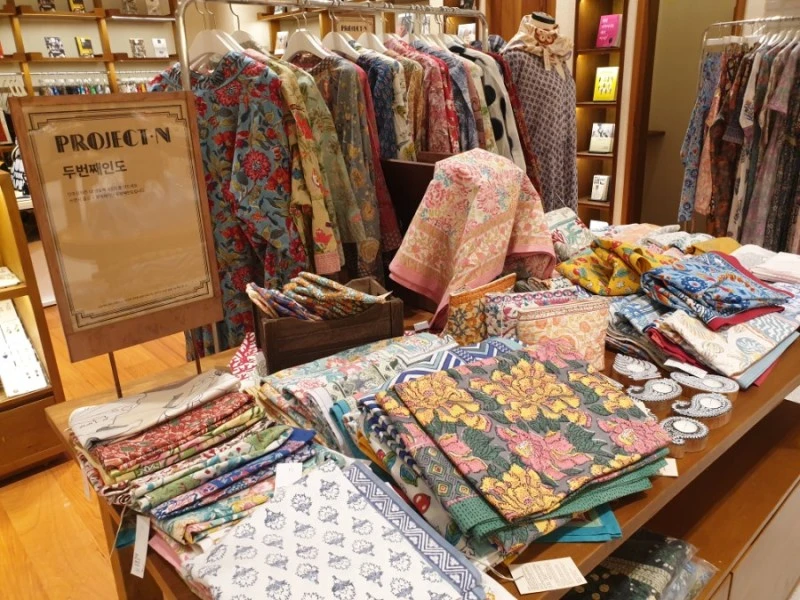 후배의 보물창고는 인도에서 생산되는 다양한 패브릭과 소품을 취급하는 편집샵이었다. 인테리어는 평소 관심분야가 아닌 데다 인도에서 나오는 천이라 하면 화려한 나염만이 떠오르기에 큰 기대 없이 만났다. 후배가 즐겨가는 곳이 나에겐 관심 없는 인도 용품점일까 봐 조금 걱정했는데 생각보다 다양한 패브릭이 보기 좋게 진열되어 있었다. 어느 정도 맞장구치며 감탄할 수 있을 것 같았다. 인도와 패브릭, 둘 중 어느 것에도 관심은 없었지만 새로운 것과 보기 좋은 것에는 다행히 관심이 좀 있었으니까.
