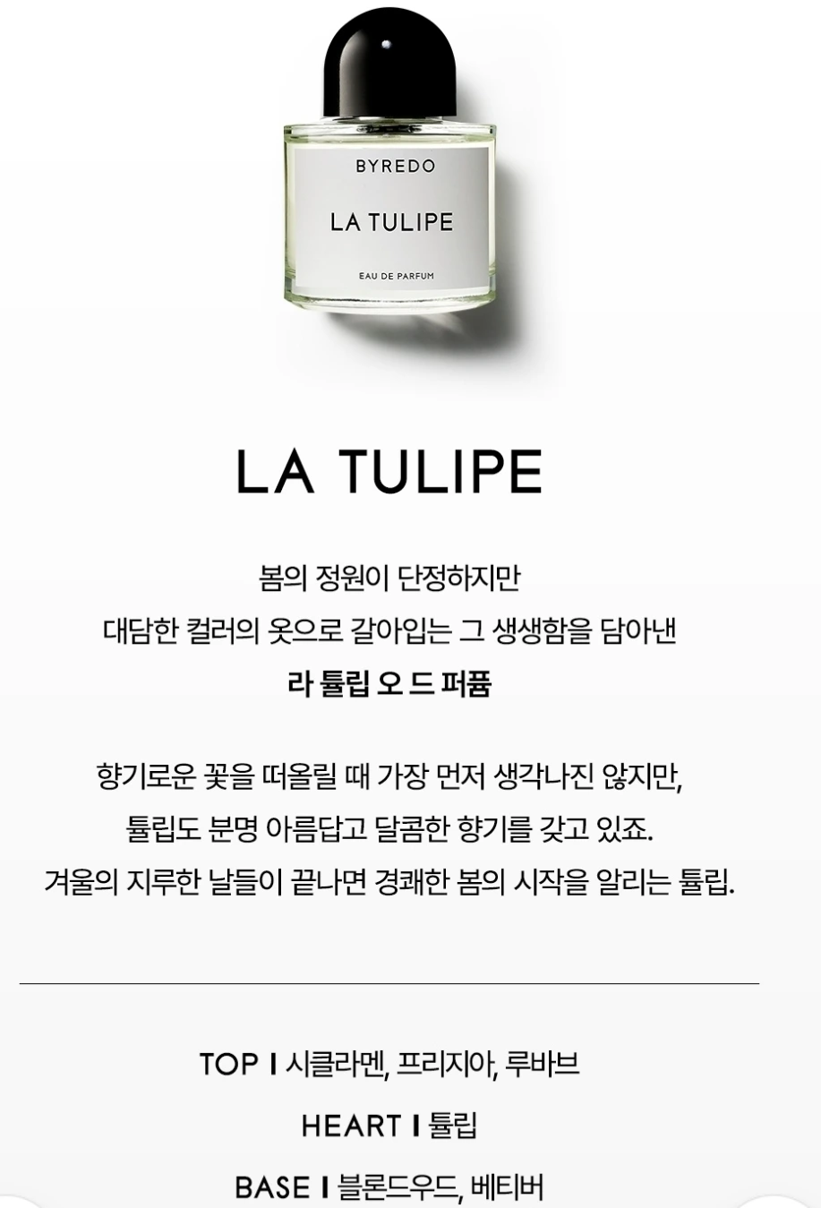 바이레도의 향수들이 무난하게 좋았다. 믹스드 이모션은 시향했을 땐 너무 강하게 느껴져서 코가 매웠는데 착향했을 때 잔향이 좋았고 모하비 고스트는 뿌릴 땐 어쩐지 뭔가 부족하다 느껴졌는데 잔향이 청량한 느낌이 들어 좋았다. 플로럴 계열은 선호하지 않는 편인데 라튤립은 부드러운 꽃향기랄까, 적당히 향기롭고 적당히 유니크해서(ㅋㅋㅋㅋㅋㅋㅋㅋㅋㅋㅋ) 마음에 든다.