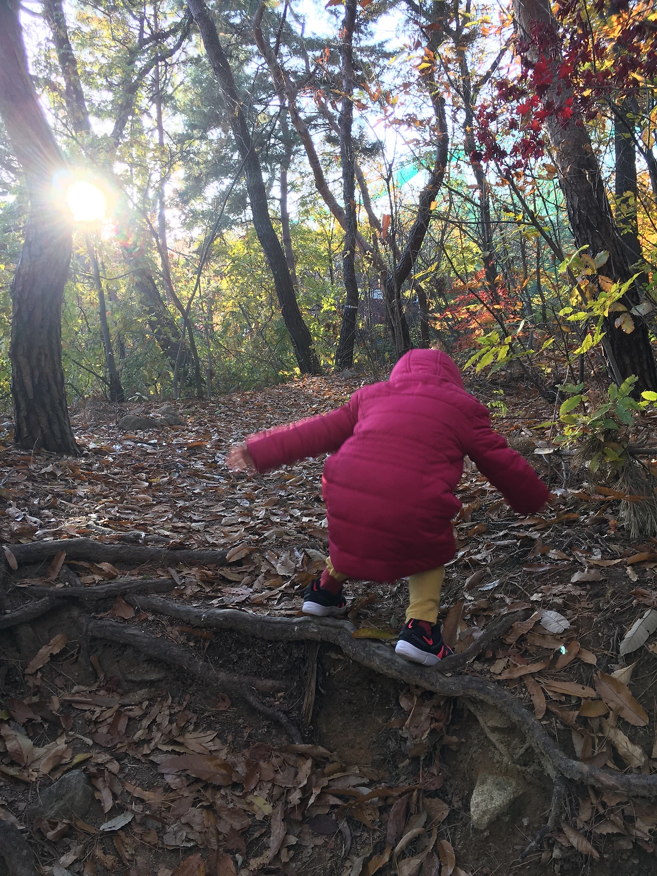 도토리 모자를 만들어 달아 주니 그게 그렇게 마음에 들었나 보다. 아이가 당장 도토리들을 더 주워오겠다고 난리던데, 얘야 땅이 좀 마르거든 주워오렴.
