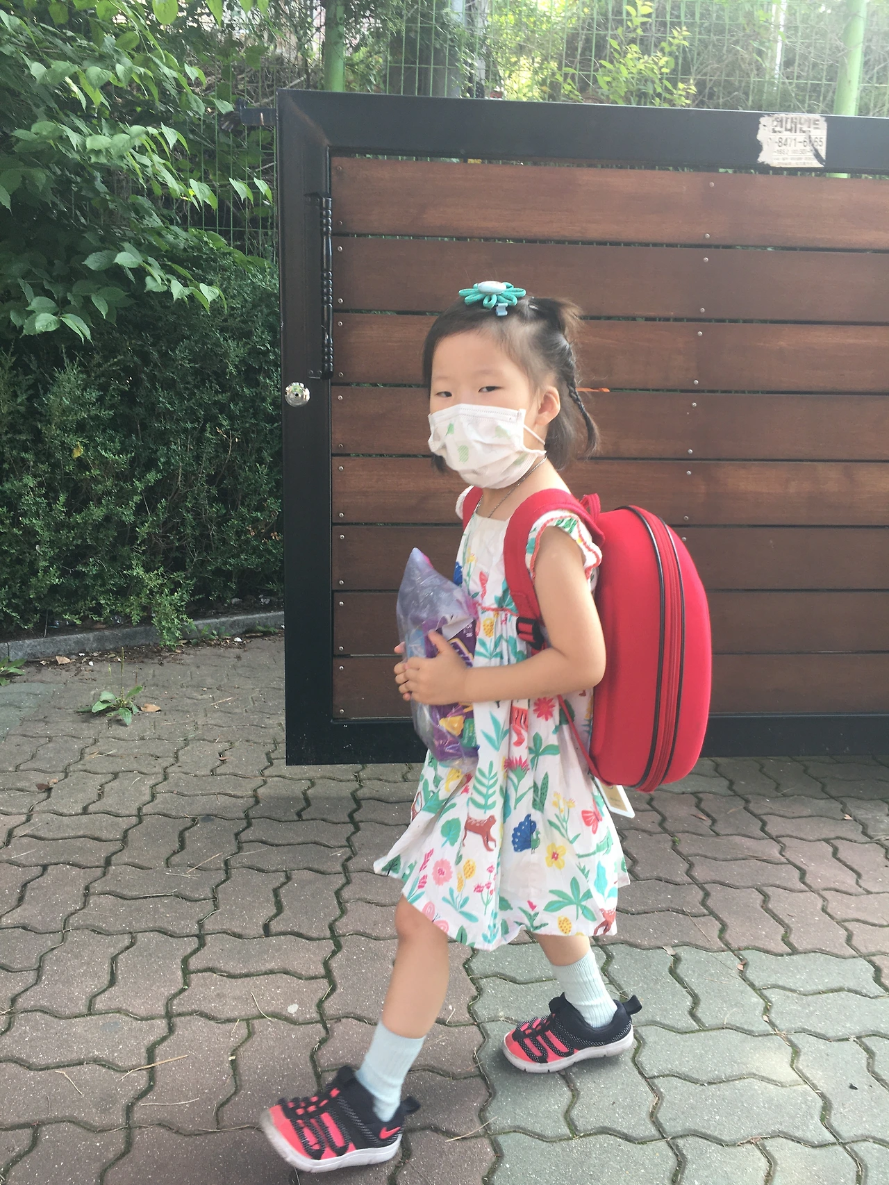 아이스크림을 꼭 끌어안고 등원을 했다.