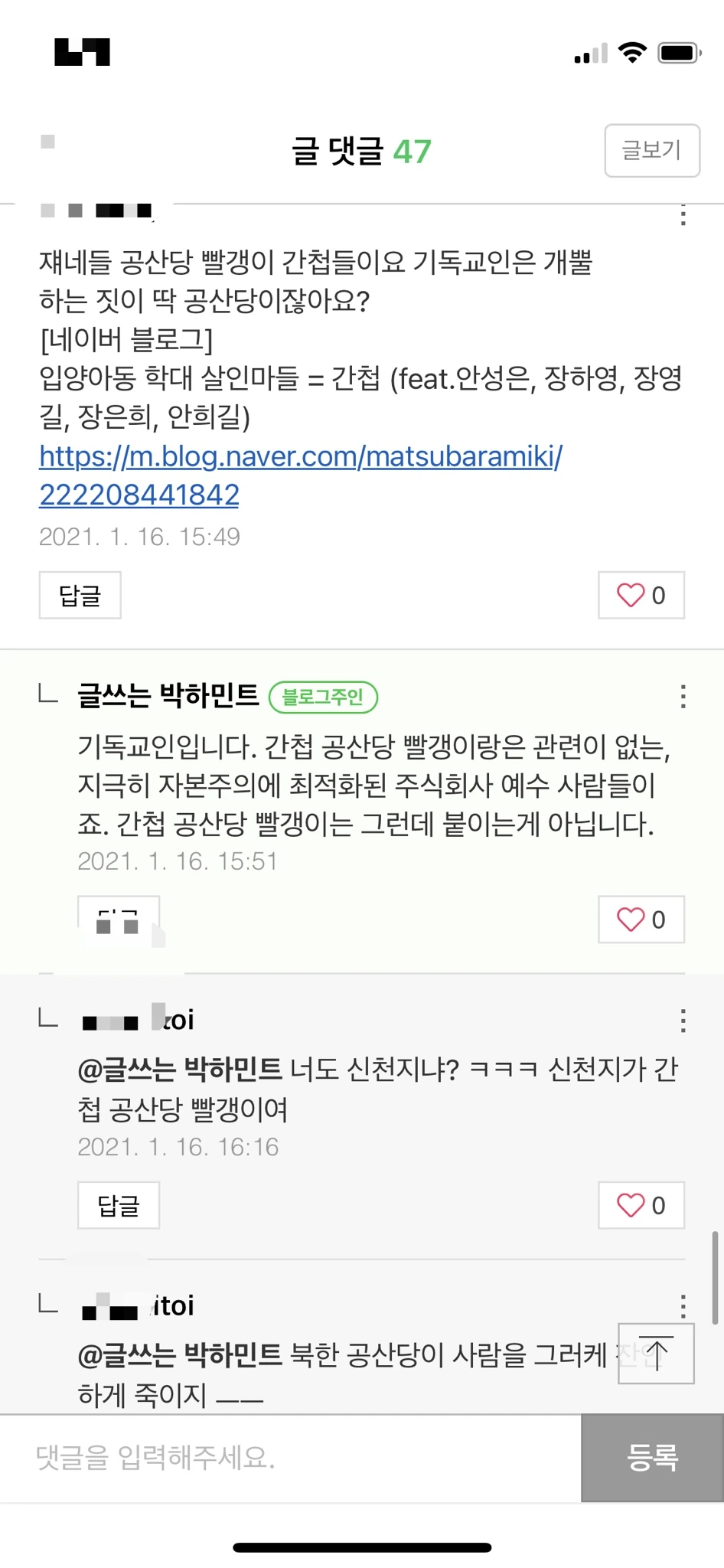 그 글에 여러 댓글이 달렸다.