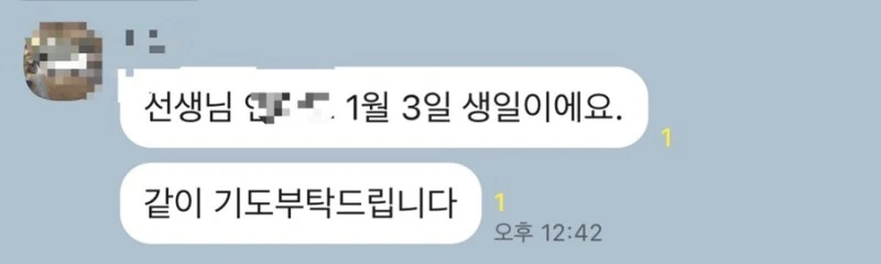 우리 아이 이름이 빠졌더라며 기도를 부탁드린다고 했다.