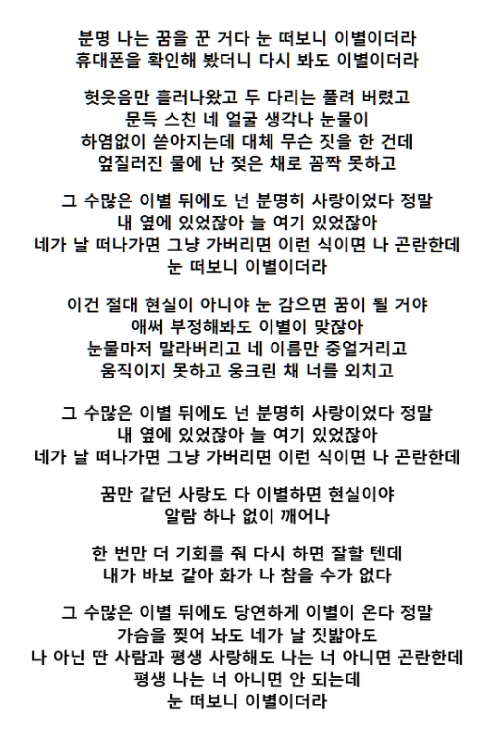 갑자기 포맨의 노래가 생각난다. 눈 떠보니 이별이더라.