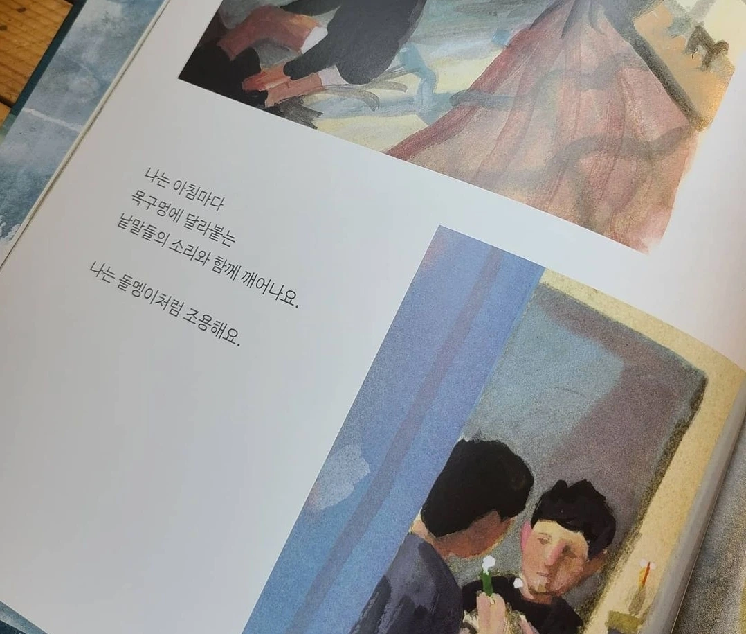 "아이들은 내가 저희들처럼 말하지 않는 것에만 귀 기울여요. 아이들은 내 얼굴이 얼마나 이상해지는지만 봐요. 내가 얼마나 겁을 먹는지만 봐요. 내 입은 꼼짝하지 않아요."(p.14)