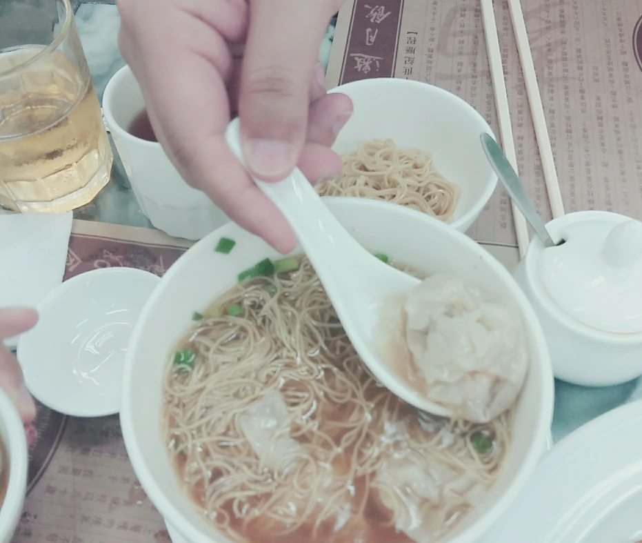 완탕면은 면이 아주 꼬들하고 얇다. 그래도 면보다는 완탕이 맛있었는데, 유명세에 비해 한국인들 입맛에는 썩 기대에 못미치지 않을까 싶다. 우리의 표정은 점차 어두워졌다. 나는 보고 배운 건 있어서, 배틀트립에 나왔던 대로 "이 고추기름을 섞으면 훨씬 맛있다더라! " 큰소리 친 뒤 시범을 보였으나, 쩝 ... 그 맛도 크게 와닿지는 않았다.