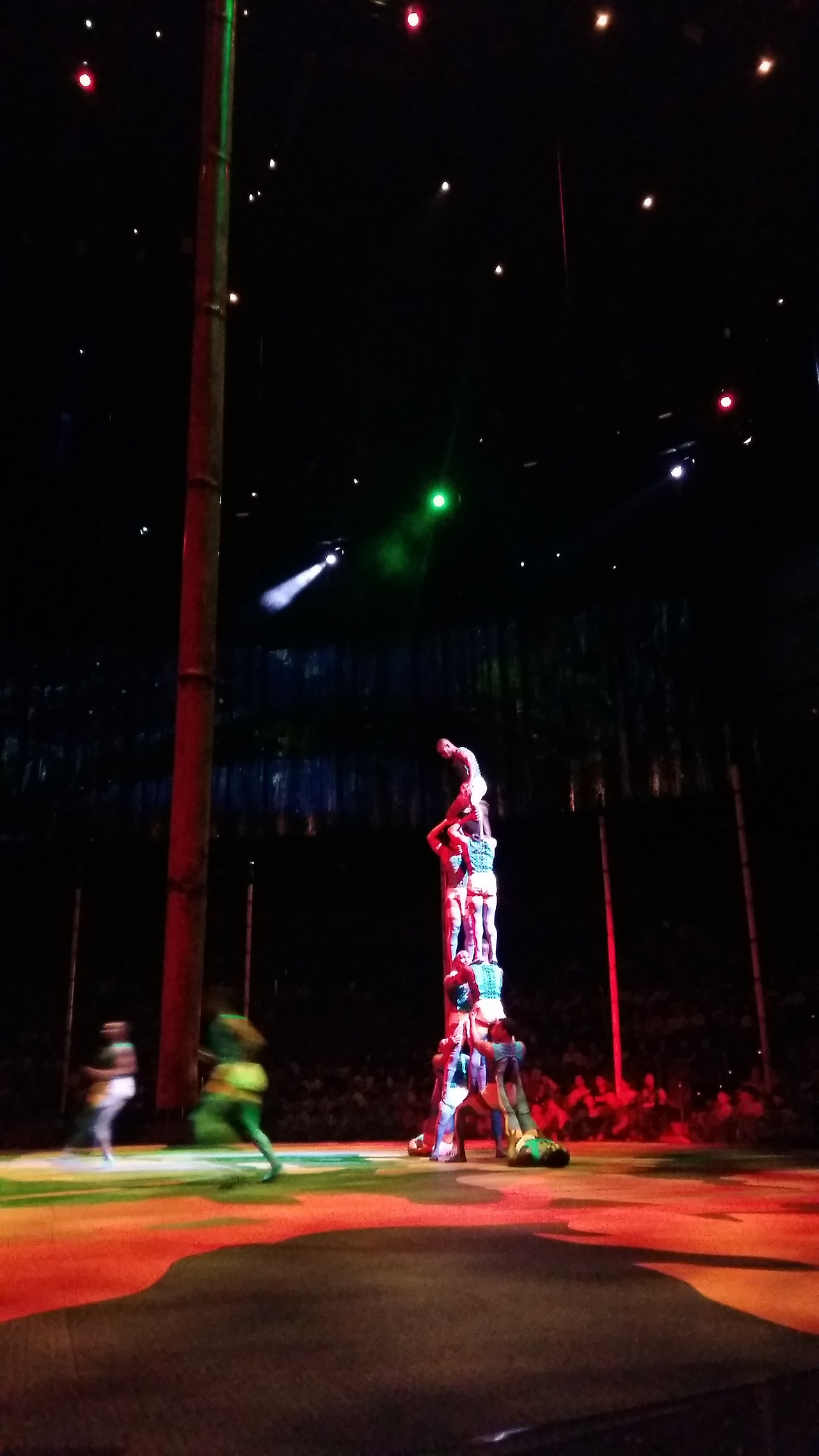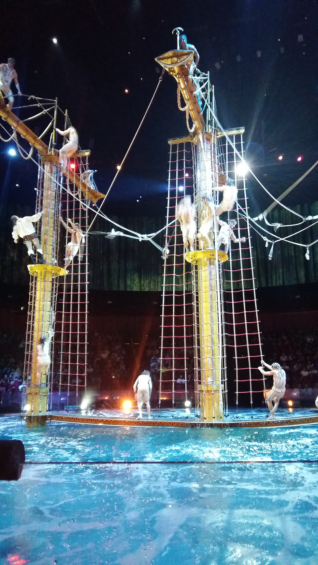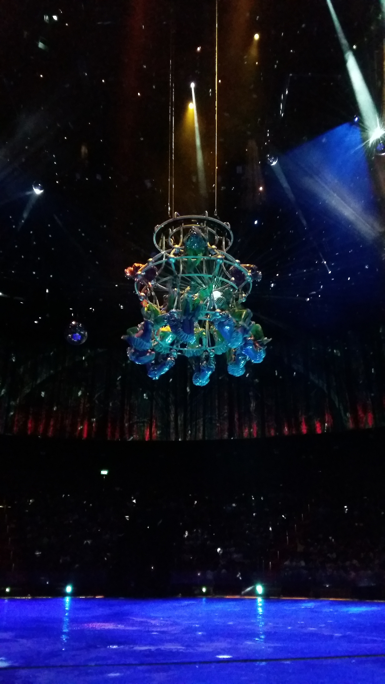 특히 인상적이었던 부분은 마치 천장의 샹들리에처럼 배우들이 둥글게 매달려 춤을 추는 광경이었다. 한 사람이라도 실수를 하면 다음 동작이 지장이 있는 고난이도였다. 모두가 고개를 들어 입을 쩍 벌리고 바라보다가, "아...!!!"하는 관객들의 탄성소리가 났다. 실제로 그 순간 배우 한 명이 실수로 물 위로 떨어져버렸고, 공연에 누가 되지 않게 유유히 배영으로 헤엄치며 공연장을 빠져나갔다. 그녀가 빠진 자리 남아있는 배우들은 , 그 조차도 이미 연습이 된 양 흐트럼 없이 공연을 진행하였다. 아, 그녀는 얼마나 속상할까. 이 어려운 공연을 하기 위해 저들은 얼마나 수 없는 노력을 했을까. 그녀의 실수는 공연을 망친게 아니고 도리어 나는 마음 속 깊이 감동을 느꼈다. 속상하게 공연장을 빠져나가는 그녀를 안아주고 대단하다고 칭찬해주고 싶었다.