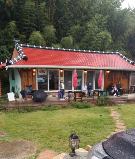우리가 건물앞에 도착하자 서빙을 담당하시는 사장님이 미닫이문을 슬며시 열더니, 자리가 협소해서 30분이상 기다려야 하는데 괜찮겠냐며 기다림의 시간을 미안해한다. 대기명단에 이름을 쓴 뒤, 귀여운 빨간 처마 밑에서 비를 피하고 있으니 운치 있고 기분이 좋아졌다.