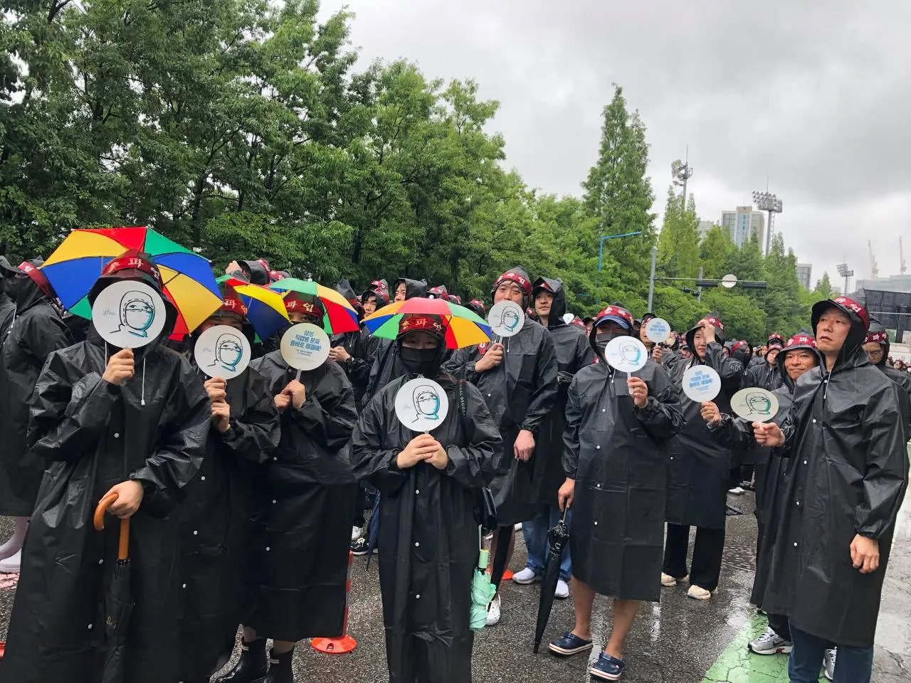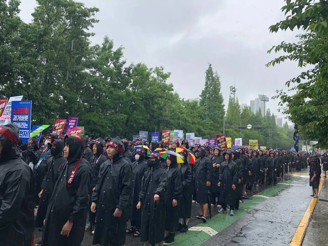 삼성 화성 사업장 앞에 다녀오는 길입니다. 폭우 속에 모인 6천여명의 조합원들에 뭉클했습니다. 생산에 차질을 줄 거라 좋아했습니다. 주요 언론사는 다 와있었구요.