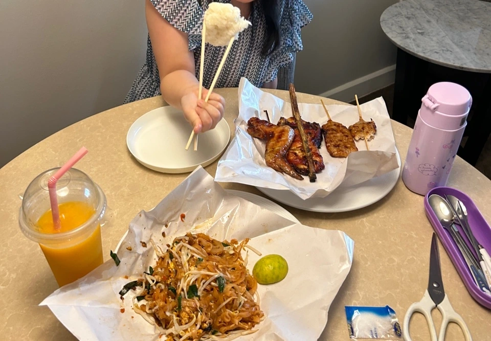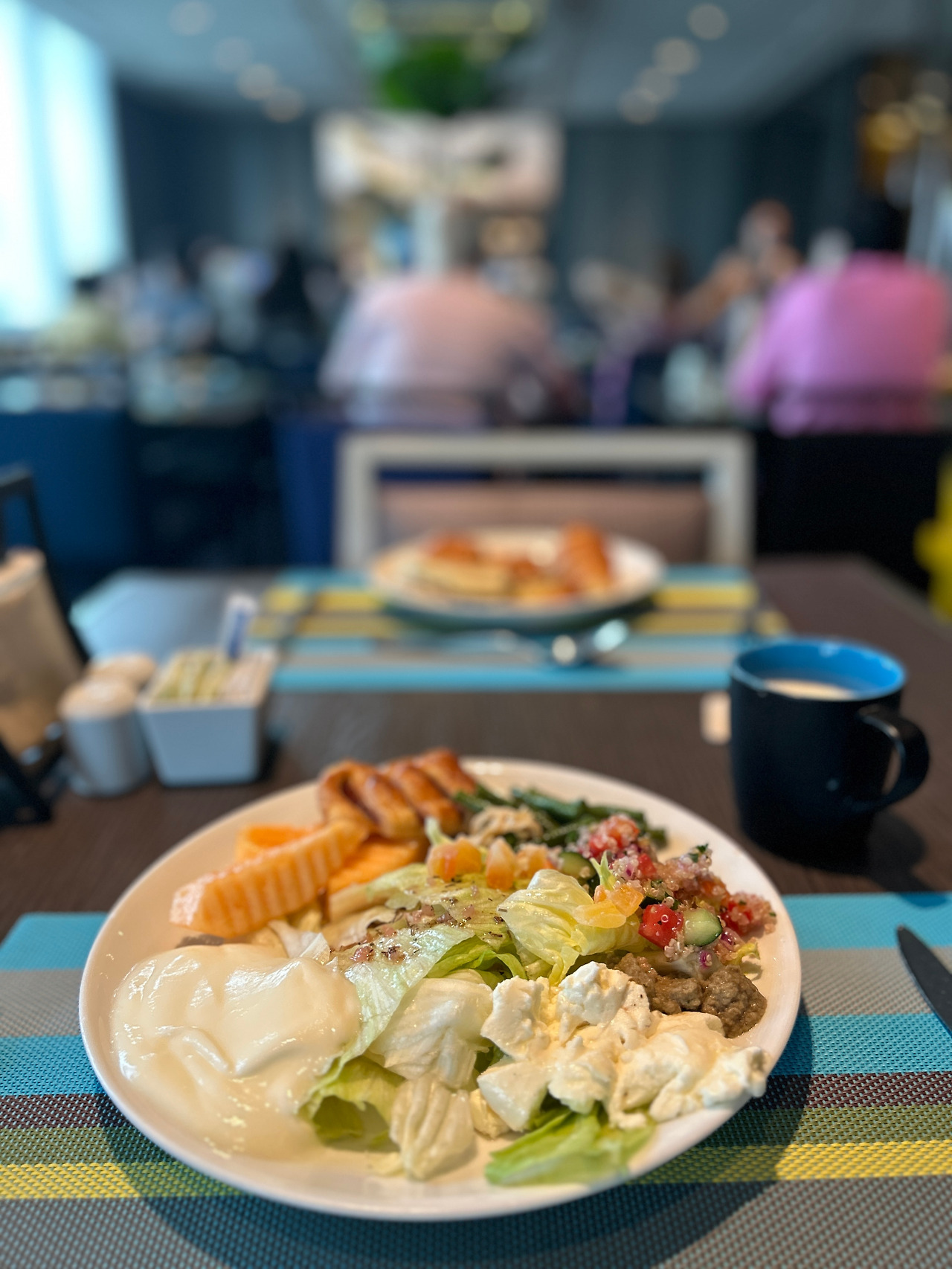 아침에 조식을 먹습니다. 김치, 샐러드, 국수, 빵 다양하고 향신료가 거의 없어 먹기 편합니다. 오늘도 아이와 저는 욕심내 수북이 담아왔네요. 전에 조식 신청 안 했더니 부엌 없는 호텔에서 아이랑 바닥에서 컵라면에 김치로 어렵사리 먹고 치우는 게 어렵더라고요. 제대로 못 먹인다는 죄책감이 컸습니다. 저도 말라가고요. 그러나 지금, 저랑 아이 둘 다 배고플 새 없습니다. 따로 신청한 조식비가 부담이긴 한데, 점심까지 배부른 걸 감안하면, 담주에 아빠라 번갈아 먹을 걸 생각하면... 호사스럽습니다.