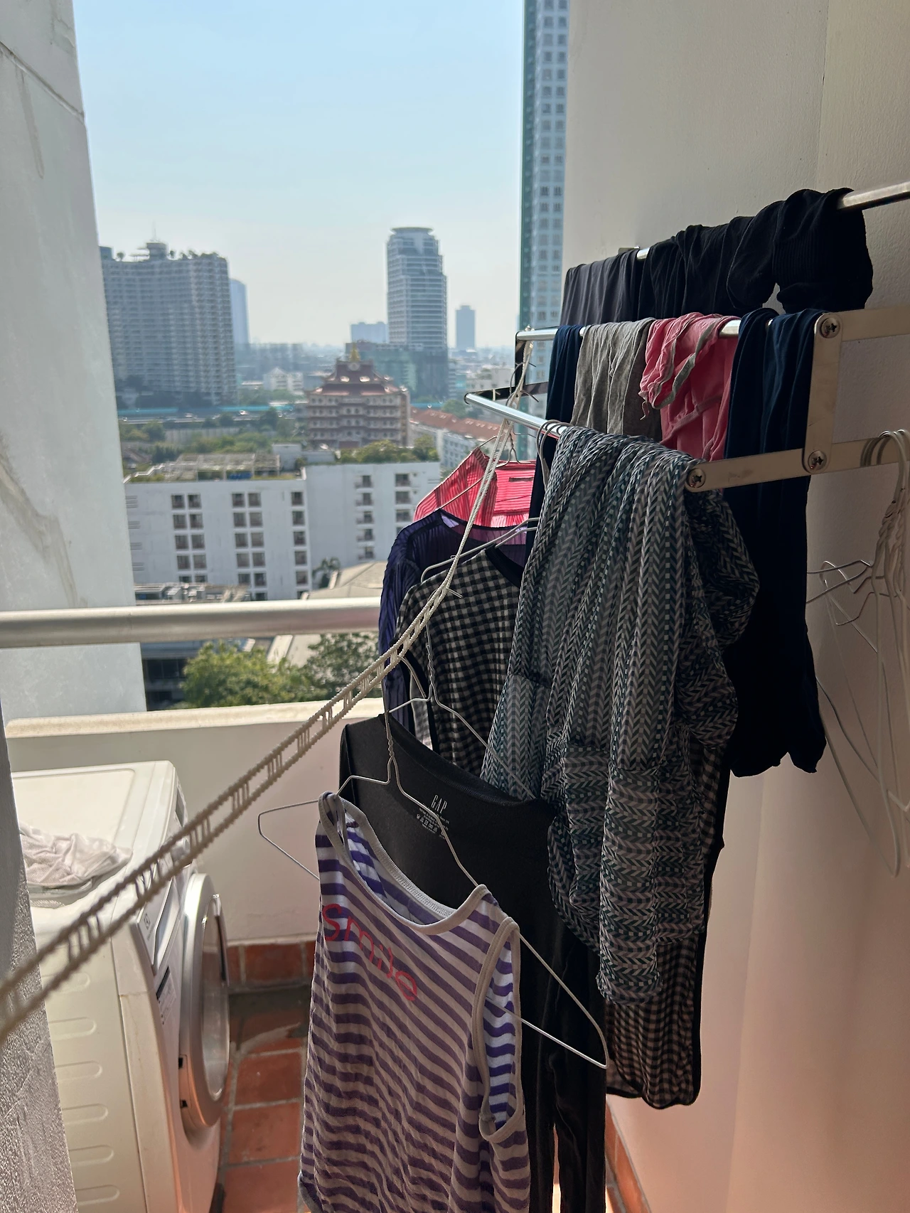 숙소 나오기 전 집안일도 했습니다. 한국을 떠났다 해서 호텔에 머문다 해서 사라질 일이 아닙니다. 걱정이 더 컸습니다. 그간 생활에 편하게 해 두었던 것들이 다 사라지니까요. 다이소 옷걸이를 설치했습니다. 수도필터는 보수직원 불러 교체했습니다. 며칠 어쩌나 고민했습니다. 세탁기 돌리기 위해 어제 근처 마트 다녀왔고 꽃향기 가득한 세제로 세탁했습니다. 햇살에 빠싹 마른 옷 입는 거 오랜만이겠죠.