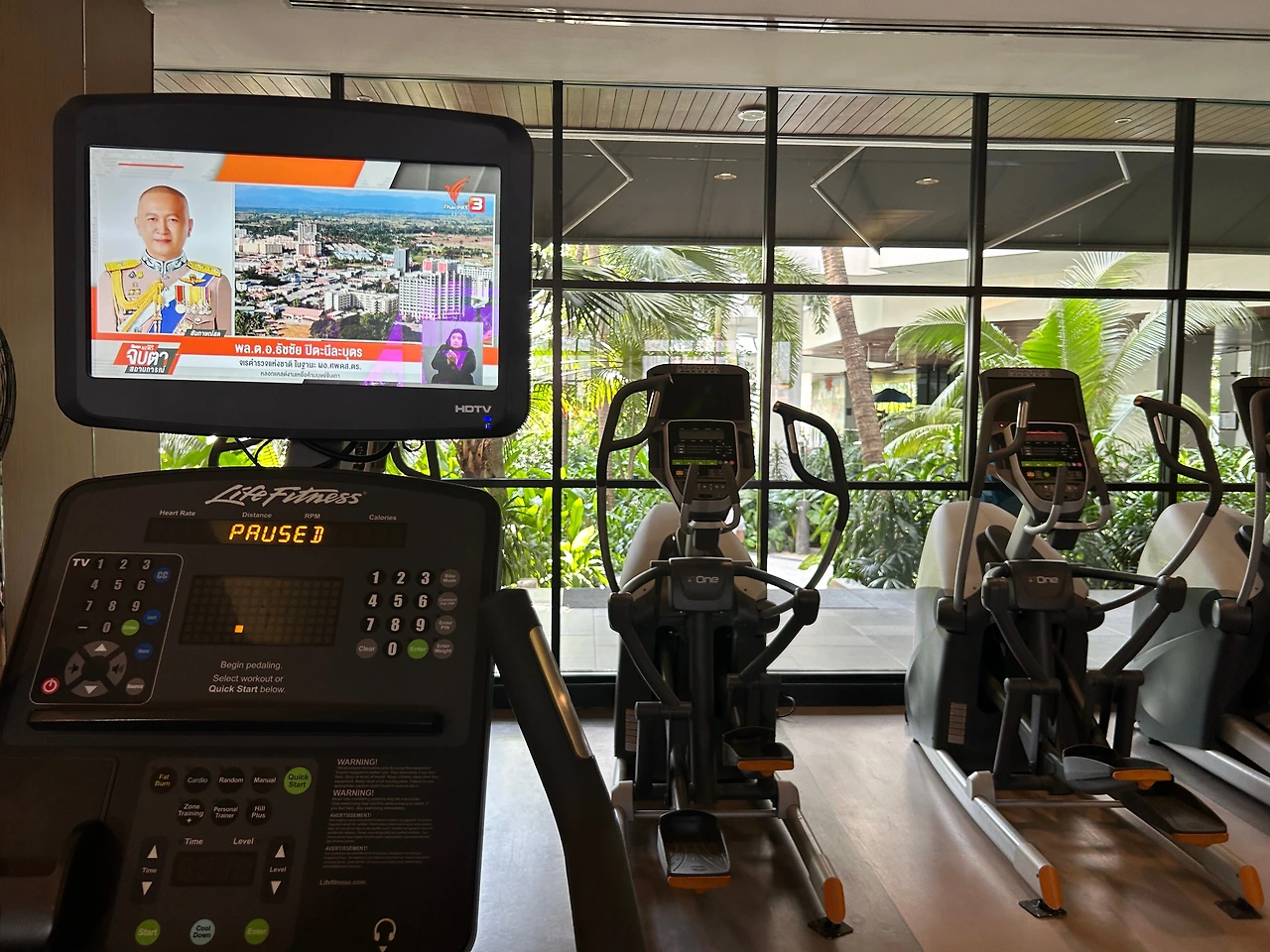 운동을 가기도 합니다. 오늘은 한국 뉴스를 틀고 화면으로는 태국 뉴스를 틀어놨습니다. 월요일 저녁 요가 1시간 호텔 무료 강습을 받았는데 저녁에 운동하긴 어렵더라고요. 오늘은 자전거 타기 30분 하였습니다. 아이들 영어캠프 간 시간 미술관으로 왕궁으로 운동으로 자유시간을 갖는 엄마들입니다. 오후 3시면 아이들 수영장 간다 할 테니 그전에 즐겨야죠.