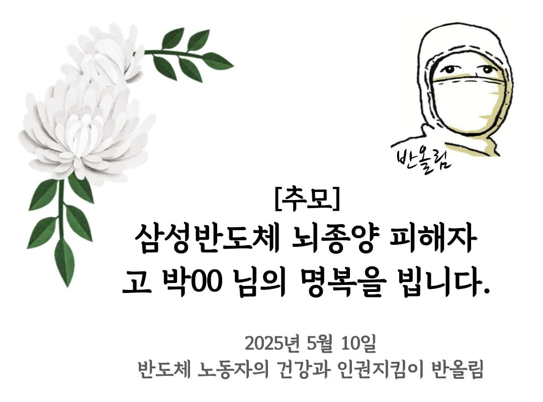 삼성반도체 뇌종양 피해자 고 박00님의 명복을 빕니다.