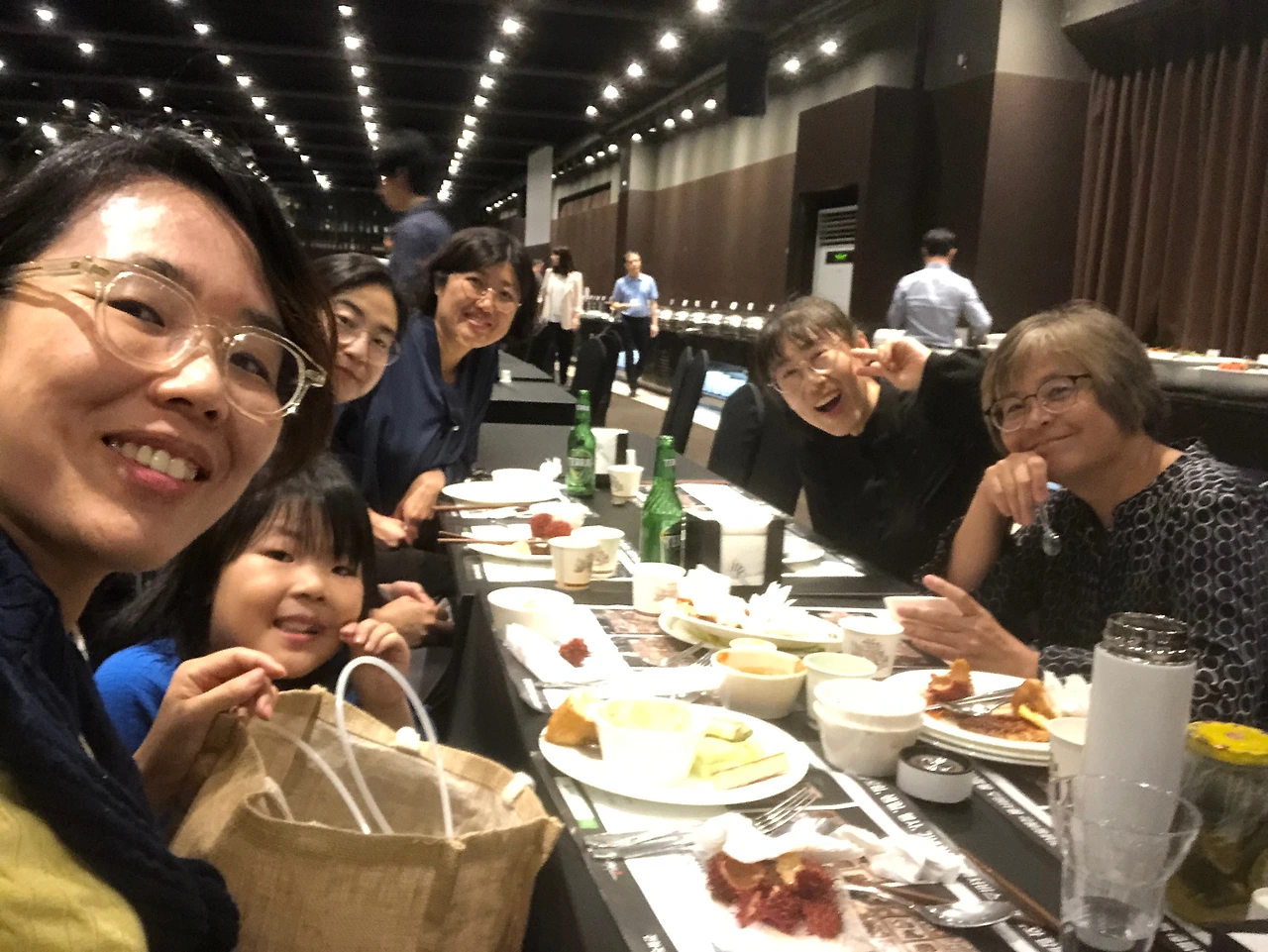 다음날, 다른 단체 활동가가 결혼하여 아이랑 또 함께했다. 남편은 그 시간 등산을 가도록 했다. 아이와 함께 결혼식에 참석하고 나면 지칠 것이 뻔하므로 이후 육아를 하도록. 결혹식장에 들어선 아이는 축하 메시지 그림을 그리고, 결혼식을 지켜보고, 뷔페도 야무지게 골라먹고 활동가들 사이에서 기념촬영도 했다. 워낙 아기 때부터 함께했기에 자신이 '반올림'인 줄 안다.