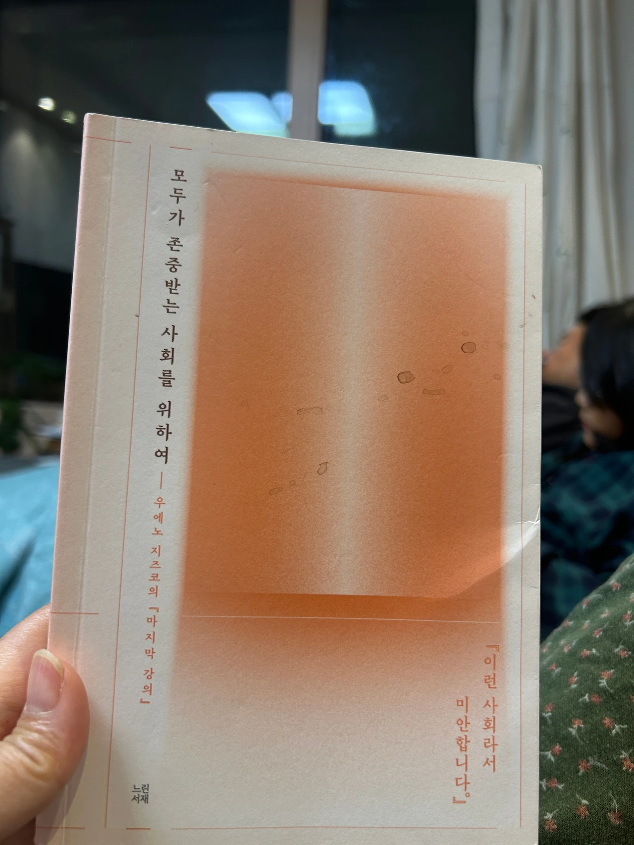 우에노지즈코의 강연을 책으로 만든 책 < 모두가 존중받는 사회를 위하여> 을 읽었다. 지난 10년의 나의 고군분투를 들여다 봤나 싶은 생생한 말을 읽다 덮다 했다.