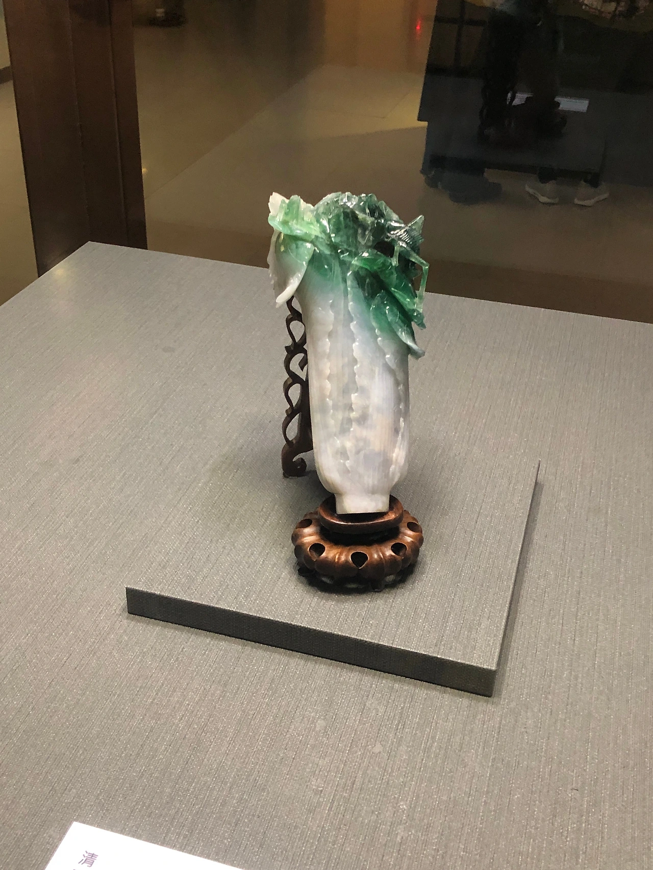 음성 해설로는 옥의 색과 형태를 해치지 않게 배추를 디자인한 거라고. 창의성과 예술성이 뛰어난 조각이라 했다. 함께 유명한 동파육 조각은 이번에 전시되어있진 않았다.