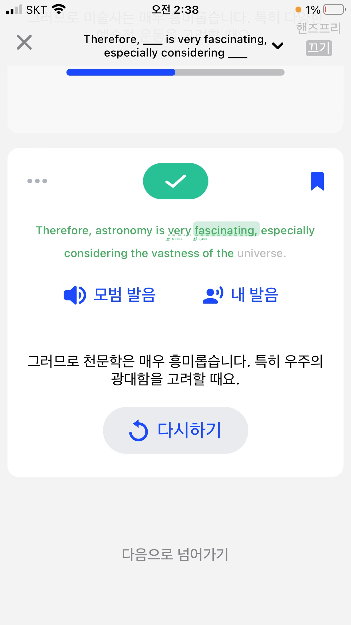 그러고는 대화만 하다 끝났나 했더니 퀴즈쇼, 독서골든벨에 준하는 레슨을 준비해 뒀다. 내가 말한 대화내용과 관련 있는 수업을 뽑아둔 거다. 기사 막히게 훌륭한 선생님이라니!