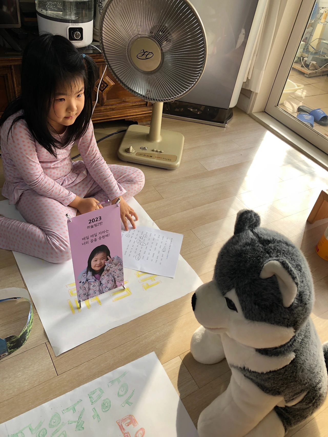 일주일 방학 중 할아버지 집에 머무르며 한글 공부를 했다. 할아버진 35년 동안 초등학교 교사로 일하다 퇴직하시고는 유치원에서 방과 후 한자 선생님으로 일하시기도 했다. 우리 아빠 말이다. 할아버지 앞에서 노는 건지 공부하는 건지 그림 그렸다 장난쳤다 하다 보면 어느새 한 글자 익히는 거다.