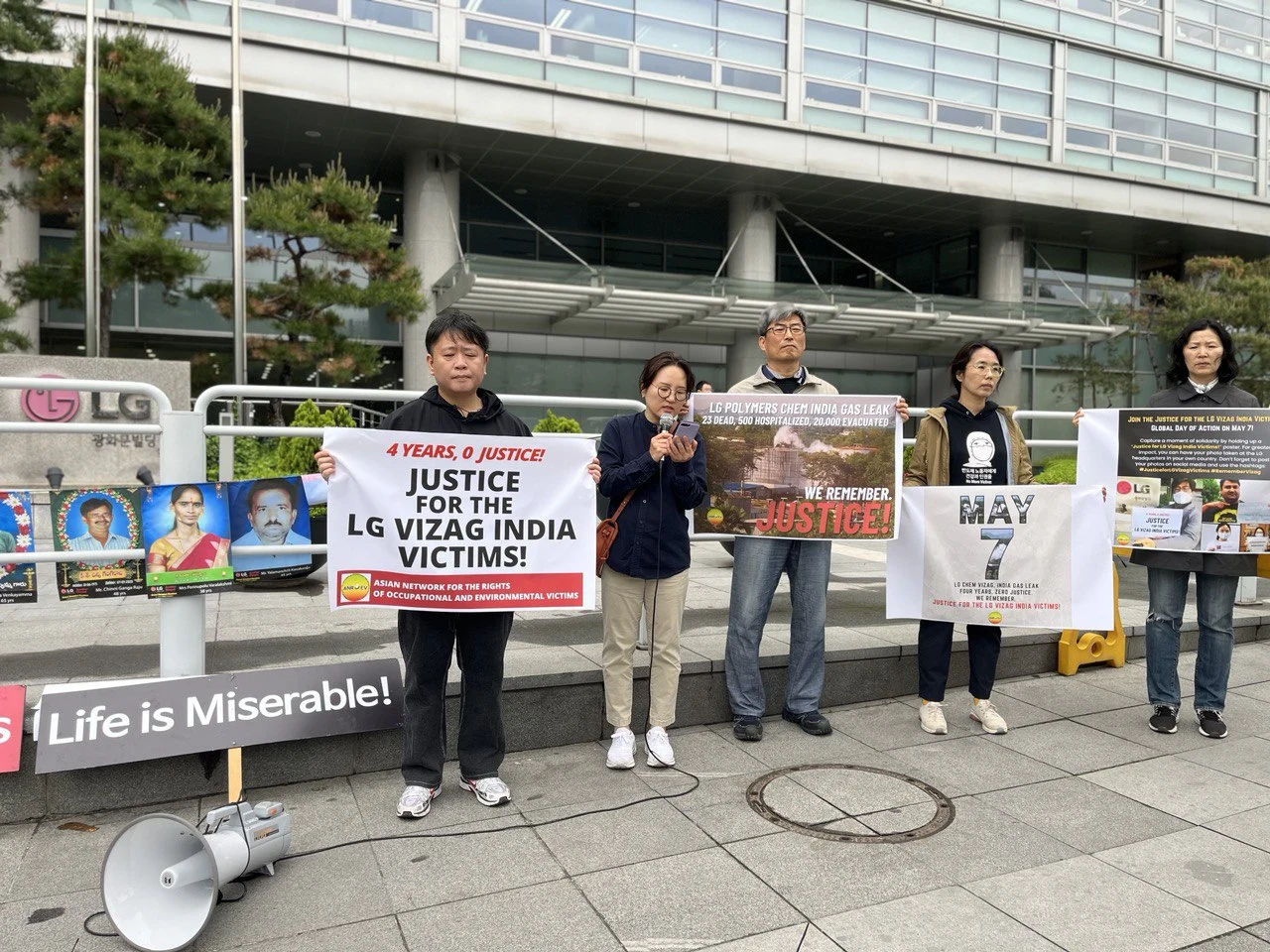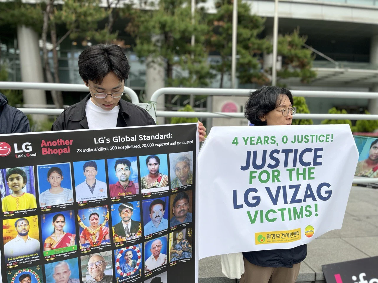 LG 화학 인도공장 참사 발생 4년째, 인도 주민의 피해와 환경오염 등에 책임지지 않는 은 LG에 분노를 표합니다.