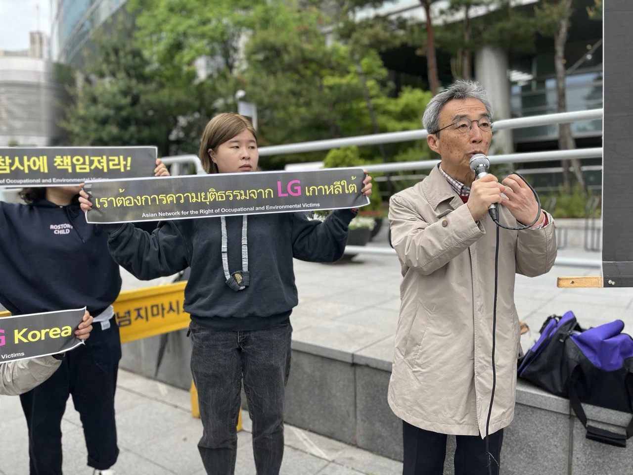 책임 있고, 지속가능한 경영을 하려면 지금이라도 대참사에 대해 사과하고, 제대로 된 책임을 지기 바랍니다. 더 오래 끄는 것은 기업에게 큰 리스크였음을 삼성 백혈병 사례를 보고 배우기 바랍니다. 반올림은 아시아 지역의 노동자들의 건강과 인권을 위해서 앞으로도 함께 투쟁하겠습니다. 감사합니다.