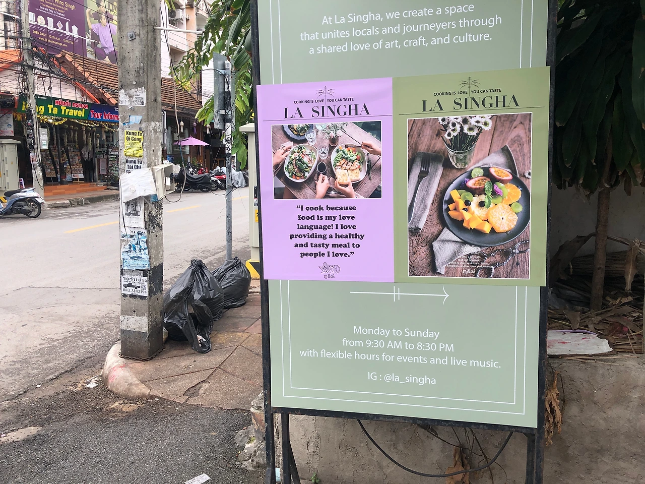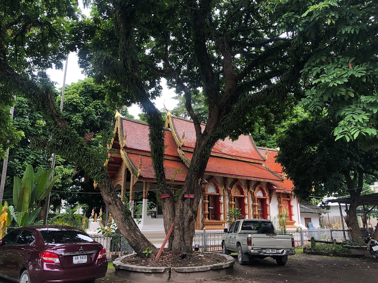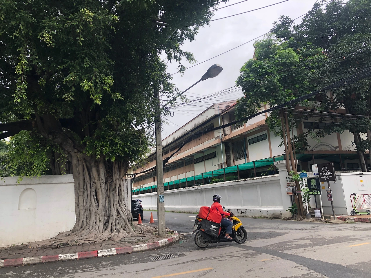 신난 아이를 숙소에 두고 산책을 했다. 치앙마이의 예쁜 카페가 비로소 눈에 보이고, 오래된 나무도 신성해 보이고, 사원도 일상인 이곳이 멋졌다. 어제 북적이던 야시장 자리가 조용한 월요일 아침 산책길인 게 새삼스러웠고 나 혼자 걷는 길도 좋았다. 차 소리 ,새소리,아로마향,기름냄 새 등 오감이 열렸다.