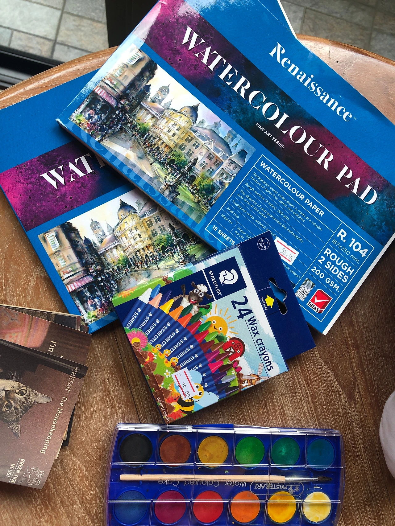 노트와 색연필 있는 곳을 향했고, 나랑 아이를 위해 도화지와 수채화 색연필 물감을 고루 골랐다. 이제 그림여행이다. 난 여행 때 매번 작은 미술도구를 챙겨 다녔었다. 아이 낳고 잃어버린 취미.