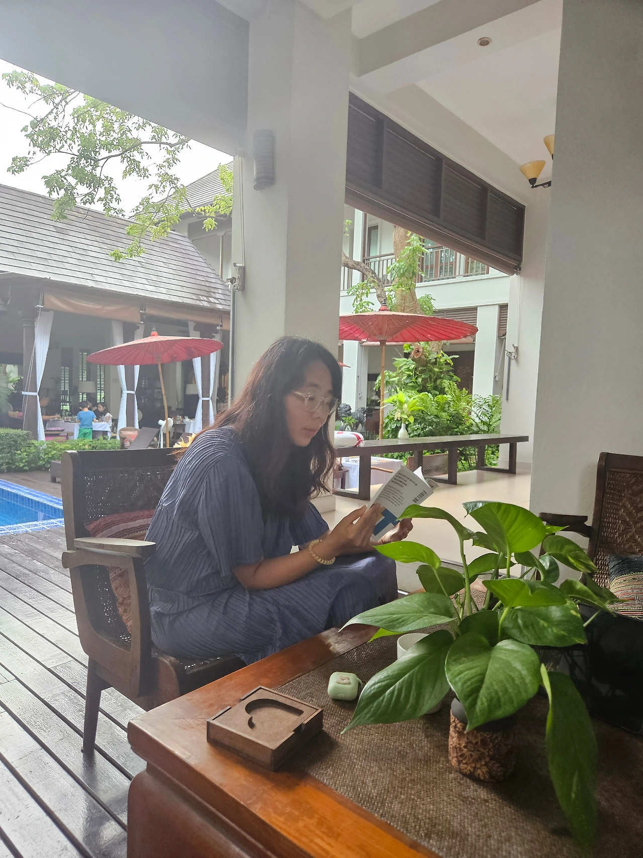 여행 막바지 일요일 정치하는엄마들 책모임이 있었다. 한국에서는 책모임이 일요일 오전 9시이니 치앙마이는 오전7시다. 알람 소리에 깼고, 내가 책 모임 할 때 아이와 남편은 체스를 했다. 이어 조식도 먹었다. 개학하면, 일터로 가면 앞으로 흔치 않은 밥상과 쉼일테니 사진도 찍었다.