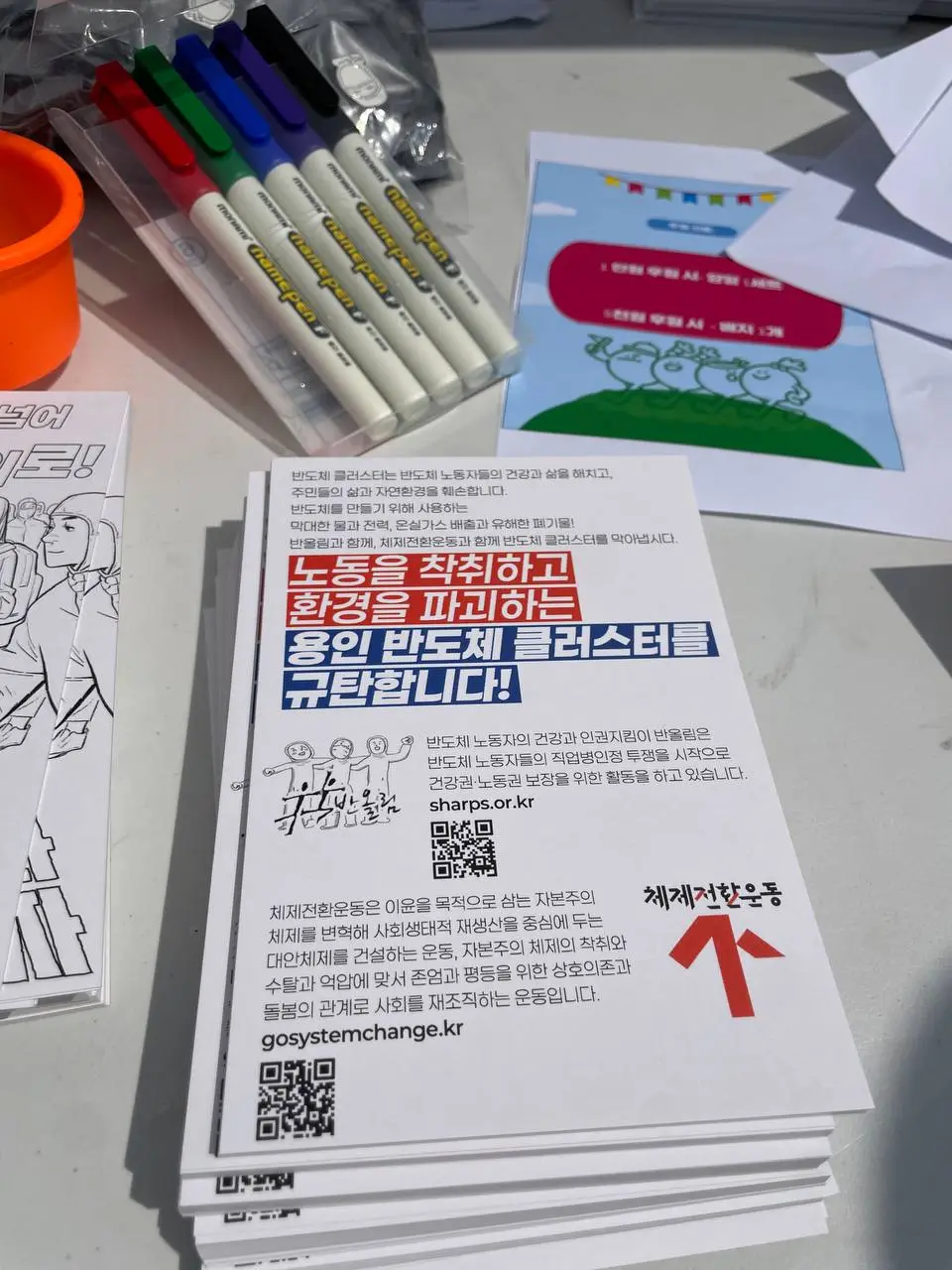 여러분, 우리가 바꾸어야 할 것은 단지 기후가 아닙니다. 우리는 이윤보다 생명을, 자본주의보다 대안 체제를 선택해야 합니다. 우리는 세상을 바꾸어야 합니다. 노동자와 주민을 아프게 하고, 환경과 지구를 병들게 하는 이 체제를 바꾸어야 합니다. 반도체 클러스터를 넘어, 기후 정의를 이루고, 새로운 체제로 나아갑시다!