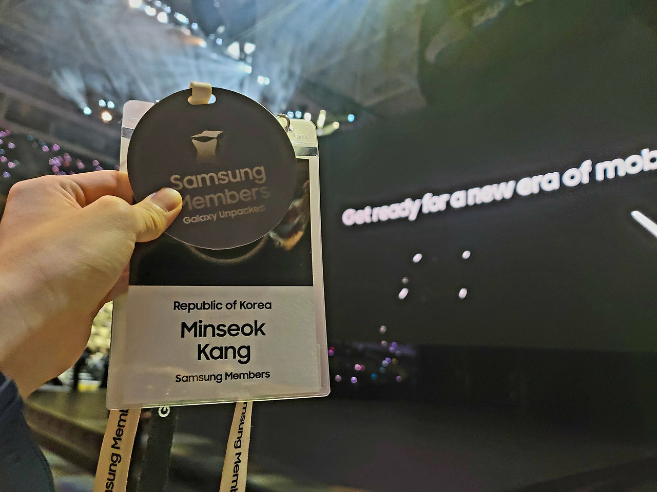 우리 삼성 멤버스 한국 팀은 언팩 행사장에서 맨 앞자리, 1열에 앉을 수 있었다. 콘서트에서도 경험하지 못한 1열을 언팩 행사장에서 경험하여 너무 좋았다.