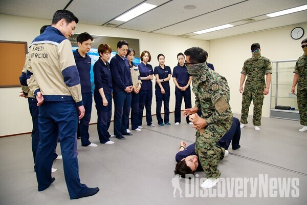 2달간의 안전교육에서는 항공보안과 안전에 대해서 배우는데, 엄청 엄숙한 분위기에서 훈련을 했다. 안전 교육을 담당하는 교관들은 처음엔 승무원이 아닌 줄 알았다. 외부에서 안전 교육을 위해 파견온 사람인 줄. 친절함이라고는 하나도 없는 단호한 모습은 내가 생각했던 승무원의 모습과는 달랐다. 훈련 중에는 우리도 훈련복인 점프슈트로 갈아입고 훈련을 받기 때문에 복장은 편했으나, 훈련 분위기는 절대 편하지 않았다. 안전을 몸과 머리에 익히는 시간이라 어쩔 수 없이 매번 긴장을 놓을 수 없는 분위기가 조성되었다.