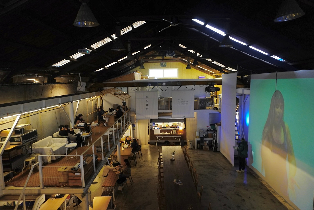 모모스커피와 다르게 2층이 있고 넓은 공간을 넓은 대로 남겨놨어요. 덕분인지, 의도된 바인지 무명일기는 전국의 로컬크리에이터들이 모이는 교류의 장이자 공연, 전시회 등 다양한 행사가 열리고 있어요.